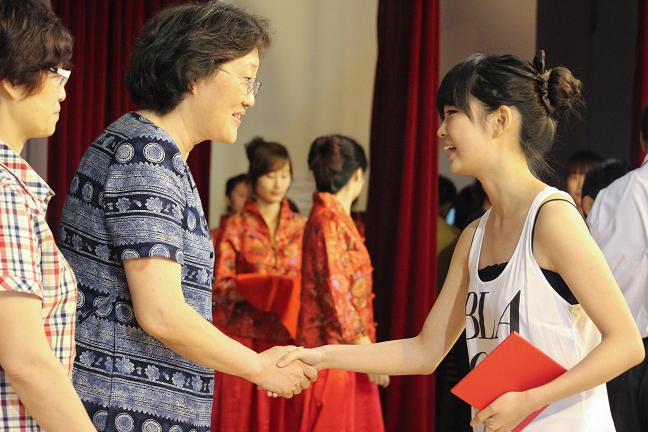 學(xué)院領(lǐng)導(dǎo)們親自為每一位學(xué)生頒發(fā)畢業(yè)證書,并且逐一握手,拍照留念,祝福學(xué)子們順利畢業(yè)。