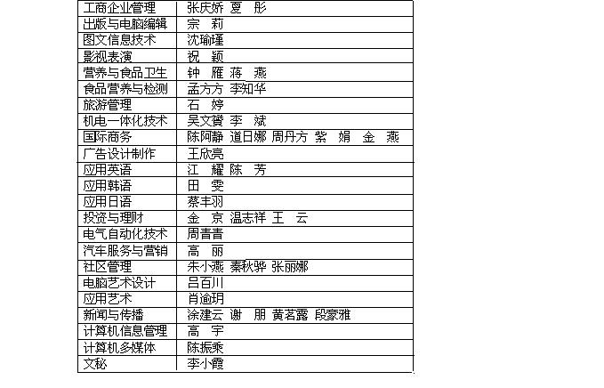 我院“2012屆市級優(yōu)秀畢業(yè)生”名單