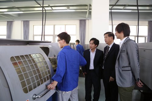 黨委書記黃晞建、校長杜飛龍視察機(jī)電工程學(xué)院學(xué)生數(shù)控車床比賽