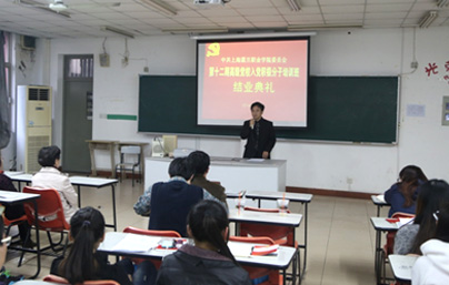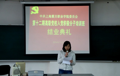 2014年11月13日下午,上海震旦職業(yè)學(xué)院第十二期高級(jí)黨校入黨積極分子培訓(xùn)班結(jié)業(yè)典禮在一號(hào)樓409教室隆重舉行。黨委書記黃晞建及各二級(jí)學(xué)院的黨總支(支部)書記出席了結(jié)業(yè)典禮。