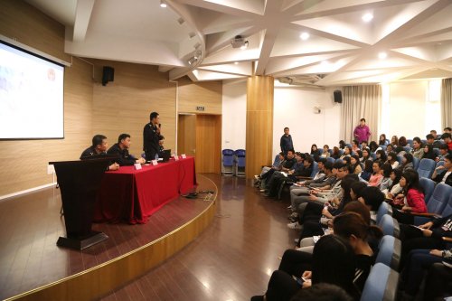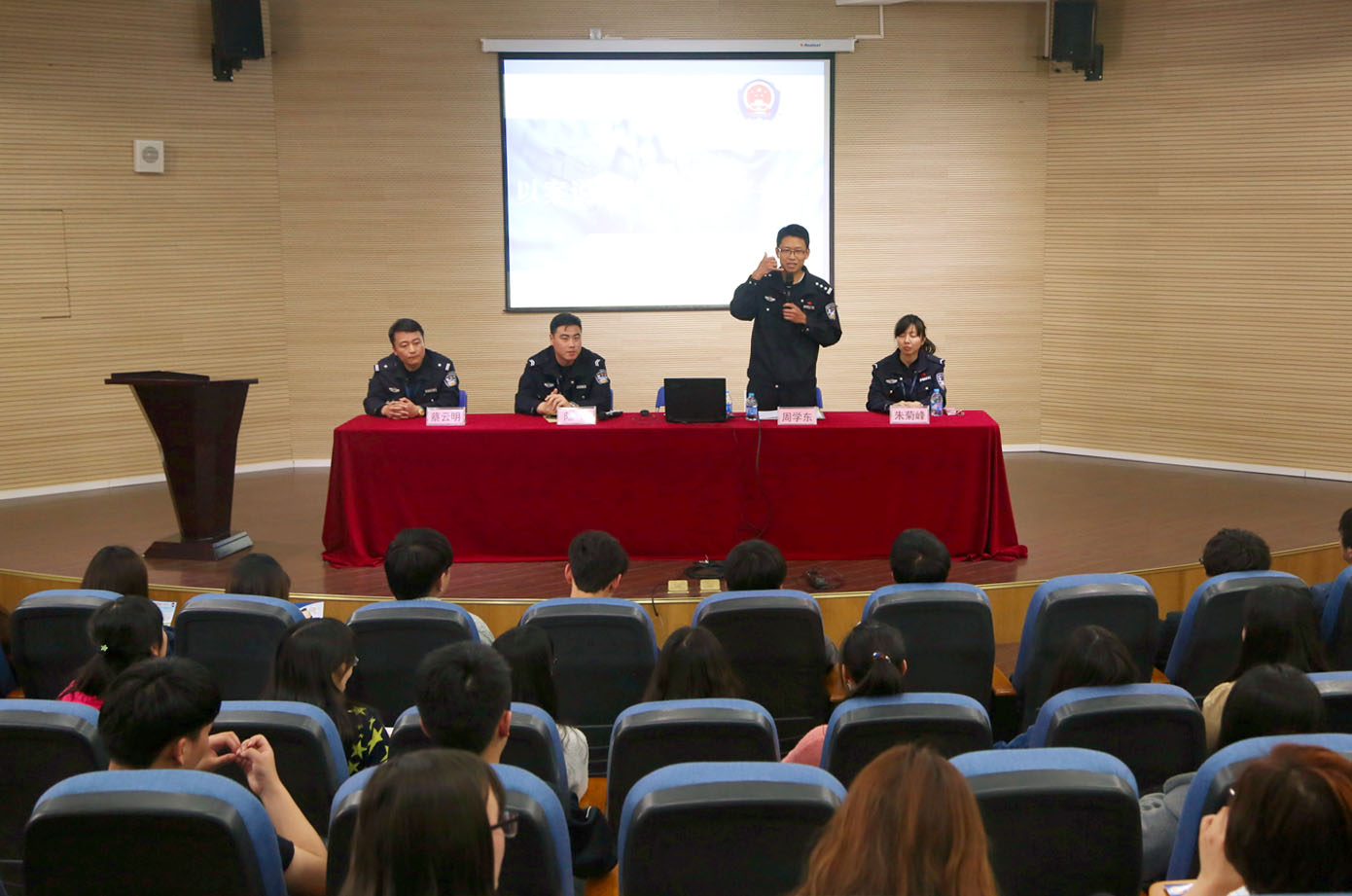 4月22日,后保處聯(lián)合寶山公安分局羅店派出所在報(bào)告廳共同舉辦了“以案說(shuō)防范,共筑平安城”的防詐騙安全知識(shí)講座。羅店派出所教導(dǎo)員周學(xué)東、警官蔡云明、陸悅、朱燕峰等同志以及院黨委宣傳部、學(xué)生處、后保處等相關(guān)負(fù)責(zé)人出席,各年級(jí)學(xué)生代表共110余人參加講座。