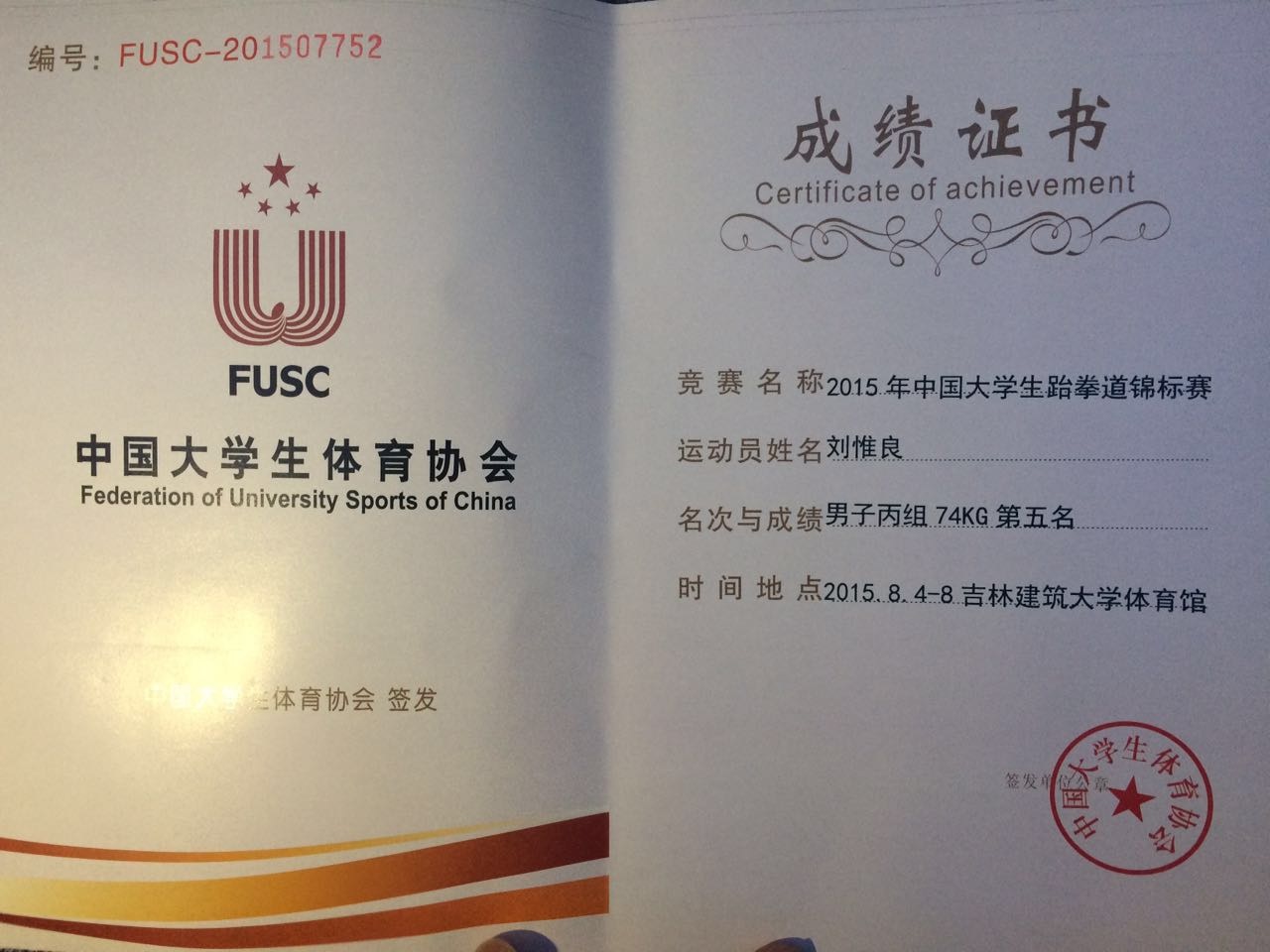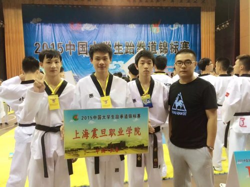 在校領(lǐng)導(dǎo)的大力支持和幫助下,我校跆拳道隊,作為全國唯一一所民辦高職院校出征2015全國大學(xué)生跆拳道錦標(biāo)賽,震旦的校旗首次在全國的體育賽場中飄揚起來。我校代表選手劉惟良參加男子74KG組比賽獲全國第五名佳績,并因在比賽中帶重傷堅持而被組委會授予“體育道德風(fēng)尚運動員”稱號。