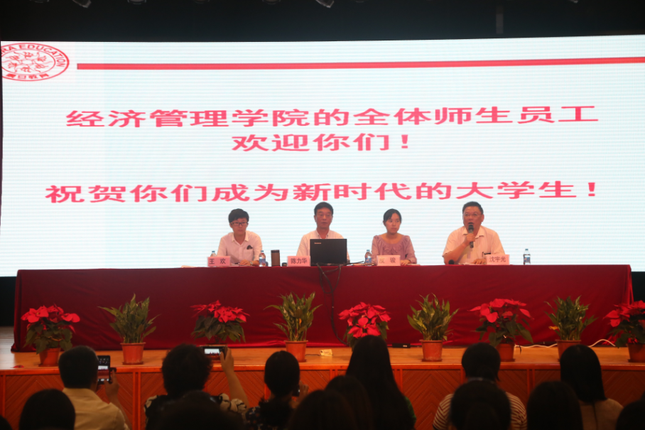 2015年9月16日,經(jīng)濟(jì)管理學(xué)院2015級(jí)新生開學(xué)典禮在學(xué)校大禮堂舉行。出席開學(xué)典禮的有震旦職業(yè)學(xué)院“十三五規(guī)劃”起草領(lǐng)導(dǎo)小組組長(zhǎng)、資深管理學(xué)教授——陳力華老師,黨總支書記王歡老師,院長(zhǎng)助理皮駿老師,以及經(jīng)濟(jì)管理學(xué)院全體教職工。開學(xué)典禮由黨總支副書記沈宇光老師主持。
