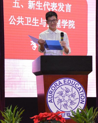 公共衛(wèi)生與護理學(xué)院新生代表李燦同學(xué)發(fā)言