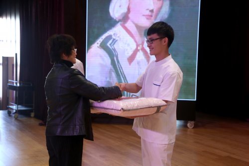 院黨委副書記夏臻老師代表院領(lǐng)導(dǎo)講話。首先,她結(jié)合自身職業(yè)體驗(yàn)向同學(xué)們描述了自己的白大褂情懷;她說,護(hù)士的禮儀至關(guān)重要,優(yōu)美良好的儀容儀表及專業(yè)形象能夠促進(jìn)當(dāng)代醫(yī)患關(guān)系和諧發(fā)展的重要因素之一。夏書記最后激勵(lì)同學(xué)們在今后的學(xué)習(xí)中要不斷豐富自己的專業(yè)理論知識和熟練的操作技能,保持得體的護(hù)士禮儀,爭取早日成為一名合格的準(zhǔn)白衣天使。