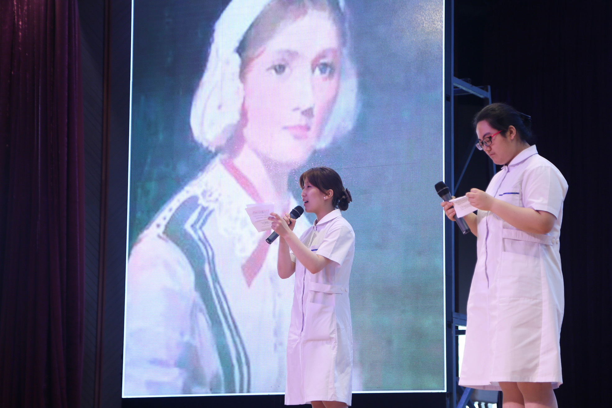 護理6班的張卓媛和王文錦用《致青春》和視頻回顧了同學(xué)們的校園生活;護理1班的應(yīng)語晨和4班的王蓓在《贊美你白衣天使》表演中,用質(zhì)樸的語言表述了同學(xué)們致力于救死扶傷、無私奉獻的醫(yī)護事業(yè)的決心。