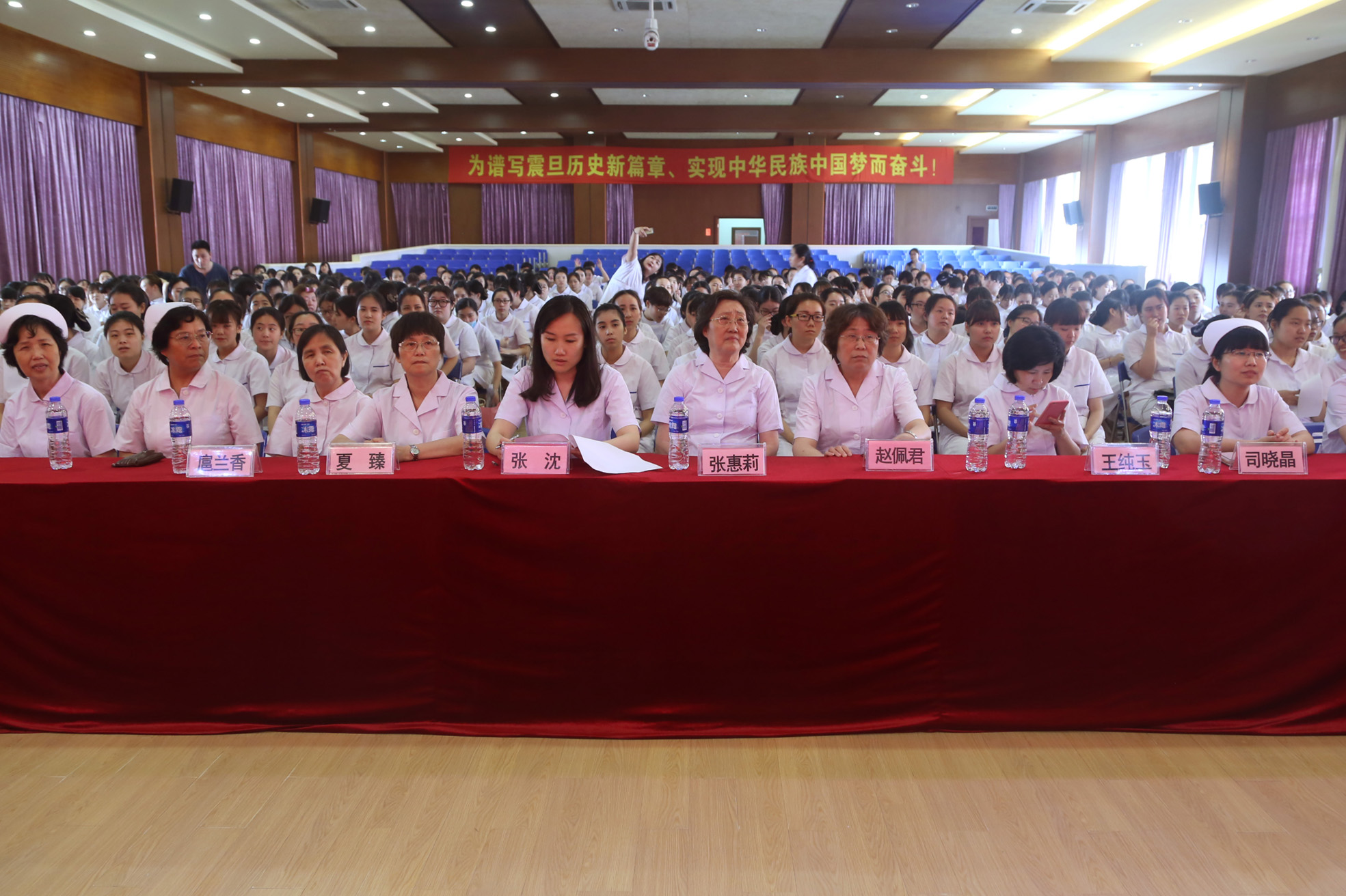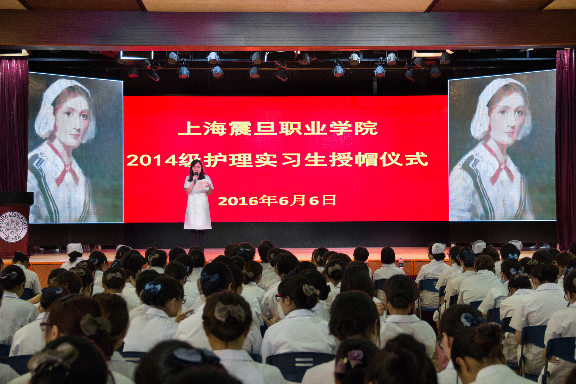 6月6日下午,上海震旦職業(yè)學(xué)院公共衛(wèi)生與護理學(xué)院2014級護理專業(yè)實習(xí)護生授帽儀式在學(xué)院大禮堂隆重舉行。震旦教育發(fā)展基金理事長張惠莉、震旦職業(yè)學(xué)院董事長張沈、震旦職業(yè)學(xué)院副院長王純玉、震旦職業(yè)學(xué)院黨委副書記夏臻出席儀式,并應(yīng)邀與公共衛(wèi)生與護理學(xué)院院長趙佩君、黨總支書記扈蘭香、副院長司曉晶、護理專業(yè)主任吳景芳共同為實習(xí)護生授帽,14級護理專業(yè)共224名學(xué)生參加儀式。