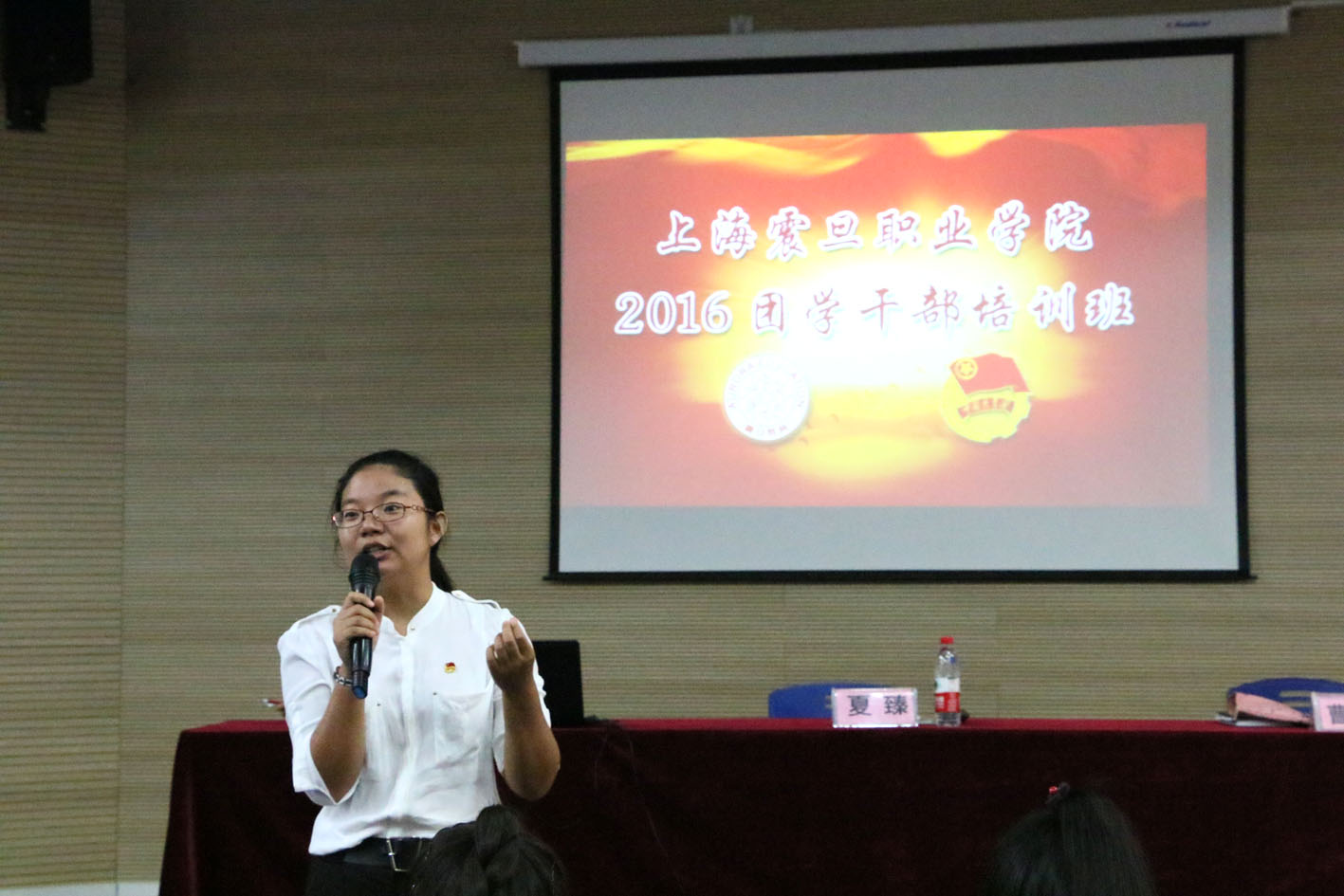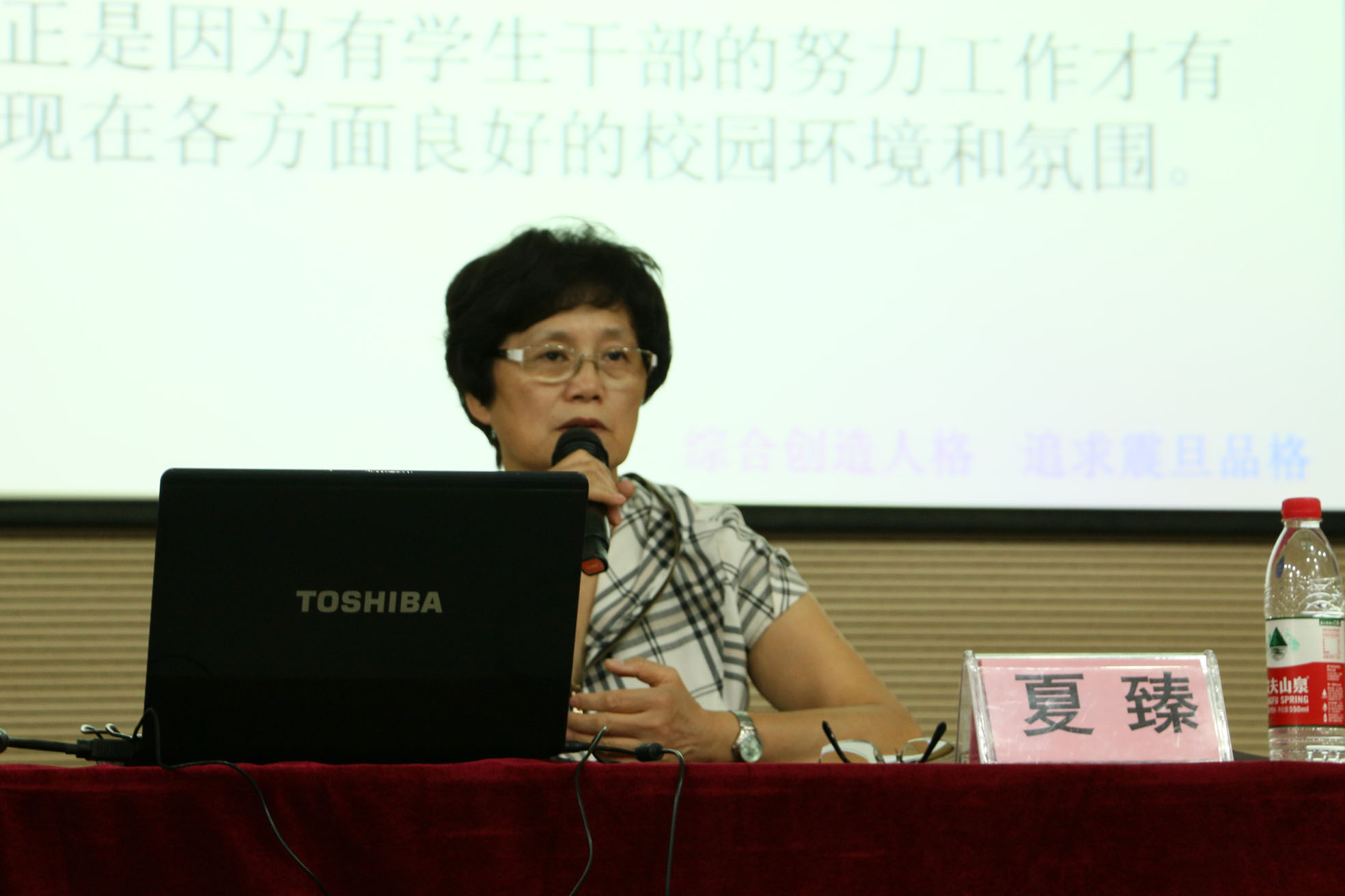 夏臻老師在簡短的開班儀式后,針對《學(xué)生干部的素養(yǎng)》進行了重點闡述。她首先對過去的一年中我校學(xué)生干部們的工作表示充分的肯定,同時也指出大家工作當(dāng)中活力不夠,方法過于單一,缺乏大局意識等一些不足之處。最后夏書記鼓勵團學(xué)干部們在新學(xué)期樹立政治意識,責(zé)任意識和創(chuàng)新意識,在學(xué)風(fēng)班風(fēng)建設(shè)方面要以身作則,做普通學(xué)生的表率。