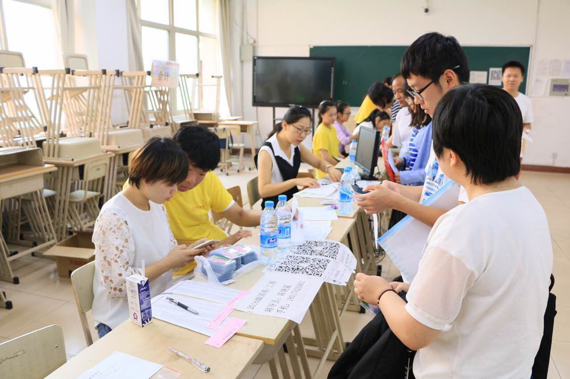 為確保迎新工作的有序進行,切實做到讓學生滿意,讓家長放心,學院采取了一系列溫馨措施:在學院報到處張貼了迎新流程和分班情況;每個班級都為新生建立了QQ和微信群;同時還設(shè)置了家長休息區(qū),安排志愿者為家長服務(wù)。學院志愿者分工明確,各司其職,在迎新工作中接待、登記、發(fā)放一卡通以及寢室分配等,都在微笑中進行。