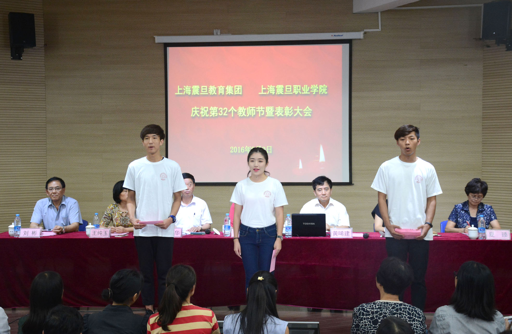 2016年9月9日,上海震旦教育集團、上海震旦職業(yè)學(xué)院隆重召開“慶祝第32個教師節(jié)暨表彰大會”。本次大會為視頻會議,主會場設(shè)在震旦學(xué)院,集團其它下屬8個院校園為分會場。震旦教育集團管委會主任張惠莉、震旦教育集團董事長張沈;震旦學(xué)院院長陳力華、黨委書記黃晞建、副書記夏臻、副院長劉彬,震旦教育集團管委會副主任、震旦學(xué)院副院長王純玉等領(lǐng)導(dǎo)同震旦學(xué)院全體教職工在主會場參加大會。陳力華院長主持大會。
