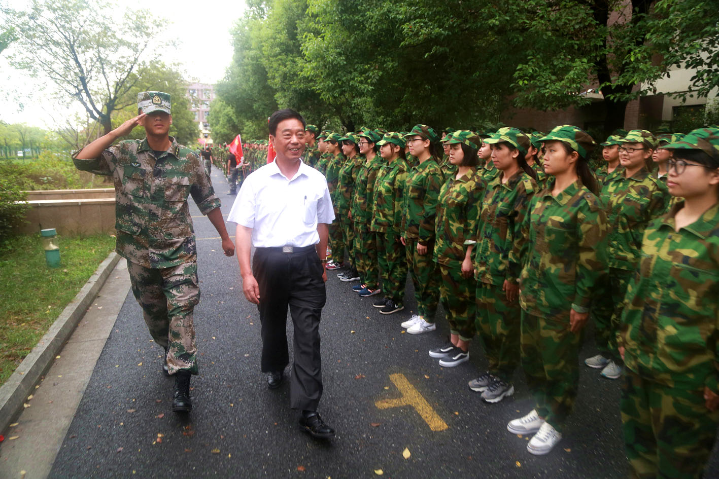 參加軍訓(xùn)的全體新生按照軍訓(xùn)的編隊序列,排列成21個整齊的方隊,以迎接學(xué)院黨政領(lǐng)導(dǎo)的檢閱。陳力華院長檢閱了各軍訓(xùn)方隊。