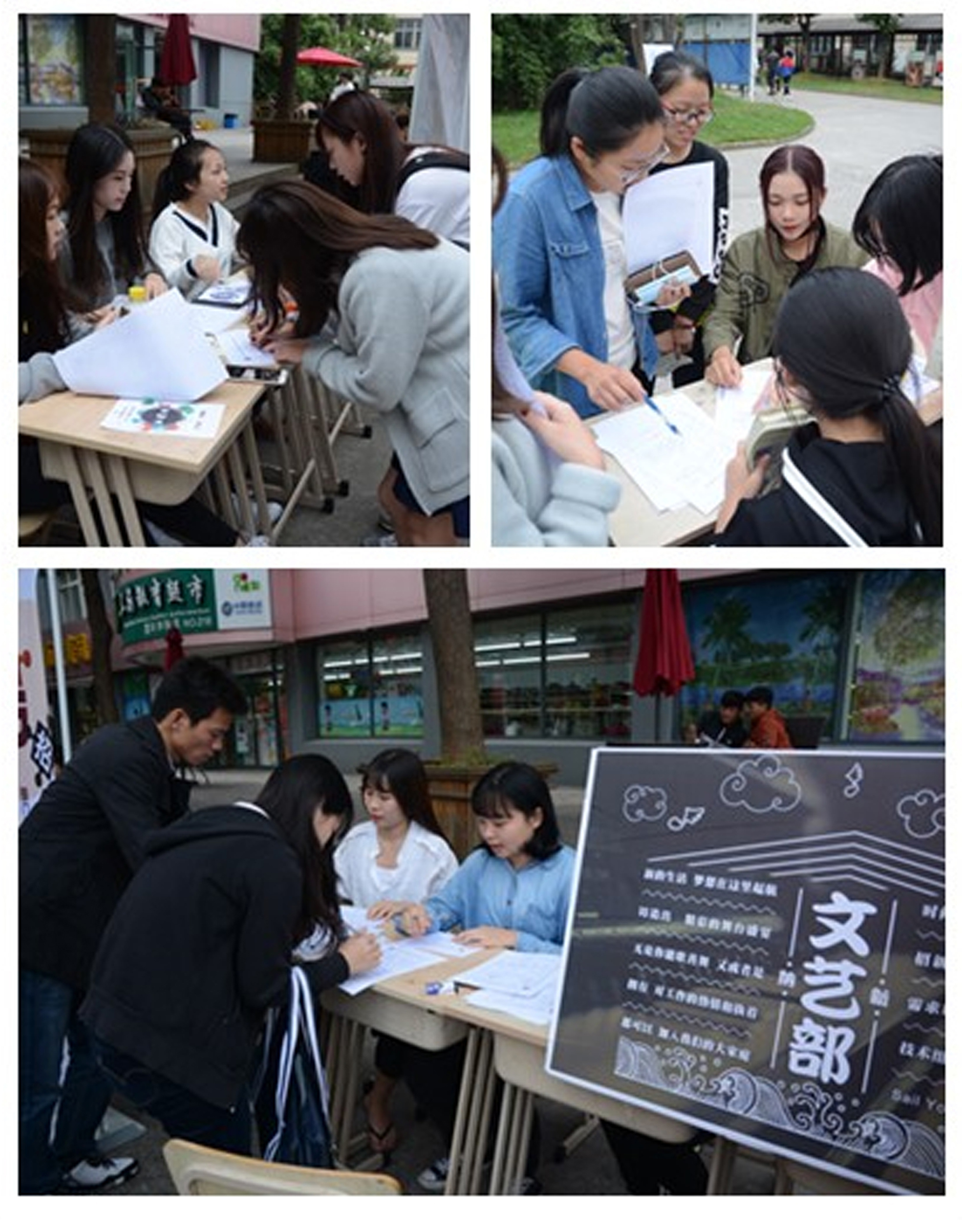 招新初試得到了廣大新同學的熱烈響應,美食街各部門攤位前人頭攢動,同學們爭先恐后選報自己心儀的部門。教學樓里各面試教室里,負責初試的面試官們認真閱讀每位同學提交的報名表,了解他們的個人經歷和工作能力,在面試過程中認真傾聽每位同學的自我介紹,并針對性地提出與面試部門相關的問題,來“考考”我們的同學。