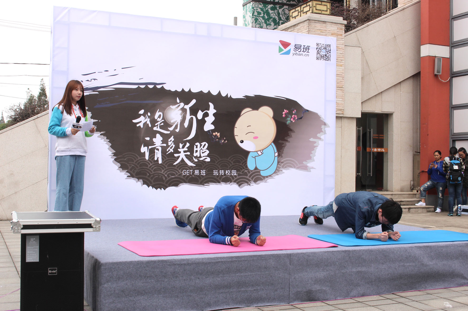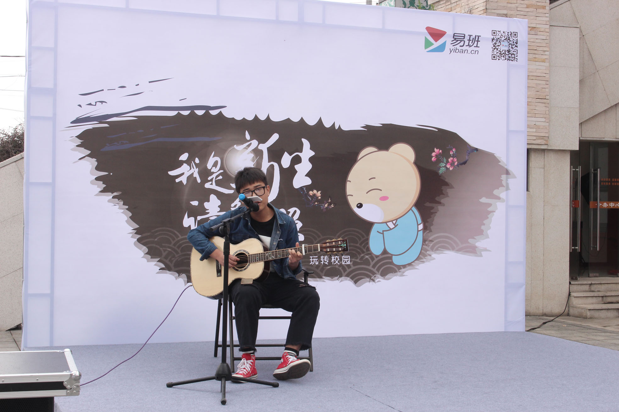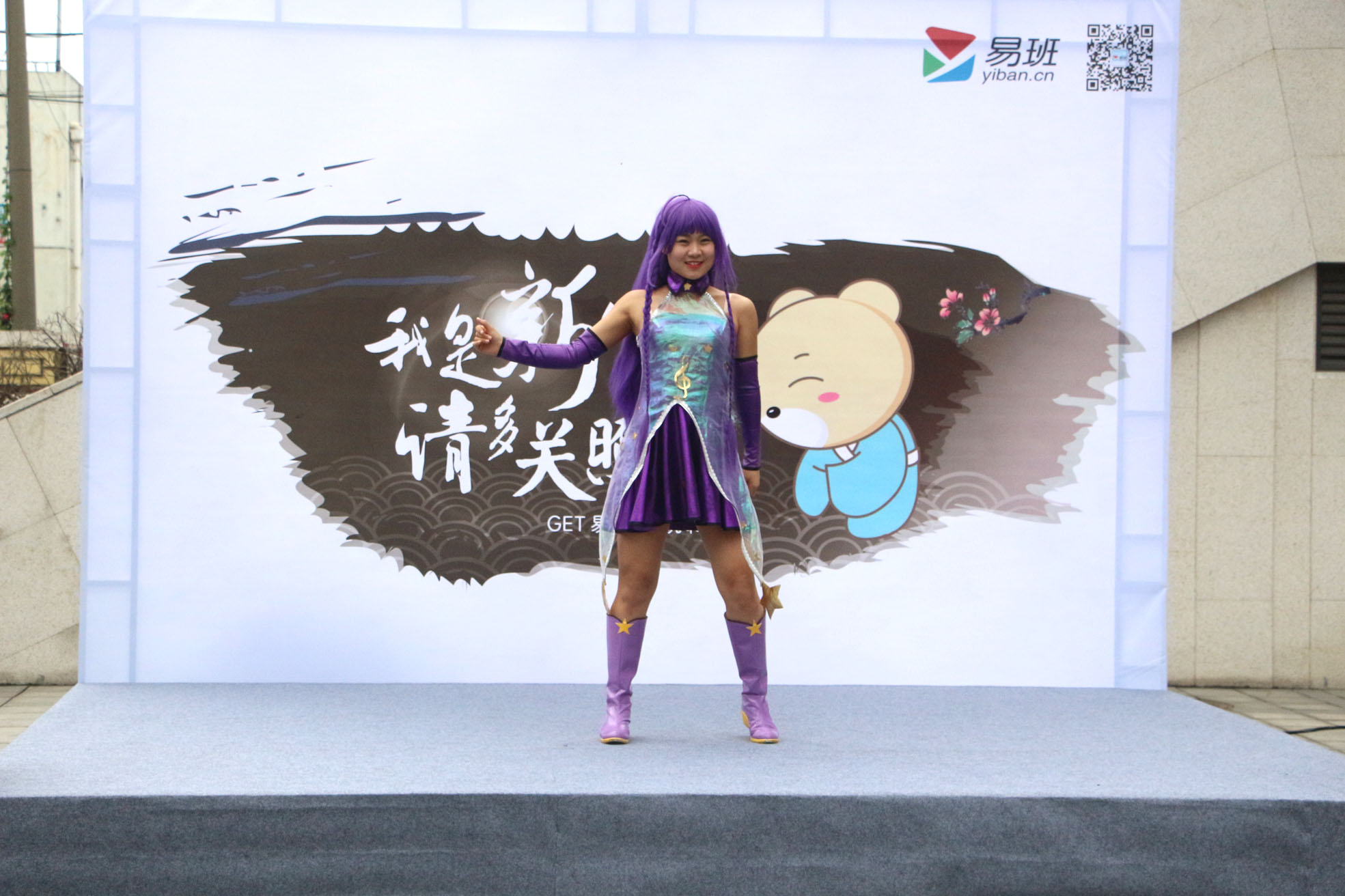 活動(dòng)現(xiàn)場熱鬧非凡,同學(xué)們各展身手,積極參與有獎(jiǎng)競猜游戲,通過回答問題也對(duì)易班文化有了新的認(rèn)識(shí)。吉他社同學(xué)們一展歌喉,或激情或抒情的歌聲久久縈繞在學(xué)院上空;滑輪社的成員們不斷變換花樣輕松展現(xiàn)輪滑的魅力,引得不少人紛紛駐足觀看,掌聲四起。還有校外舞蹈嘉賓優(yōu)美的舞姿和絢麗的服飾相得益彰。更有可愛的易班熊與同學(xué)們親密互動(dòng),同學(xué)們?cè)诂F(xiàn)場掃描二維碼可獲得鼠標(biāo)墊、易班配章等精美禮品。