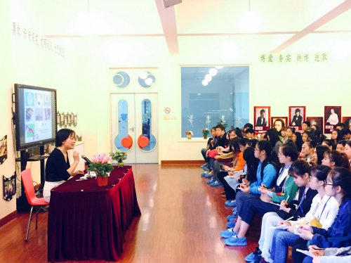 上海震旦外國語幼兒園夏苗園長認真為我院學(xué)生講解