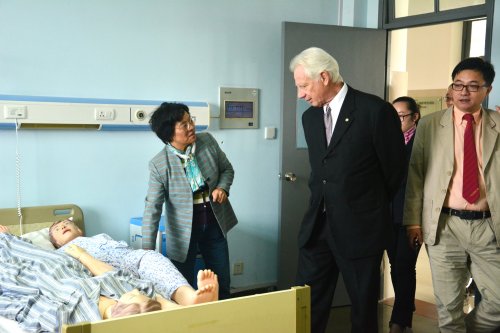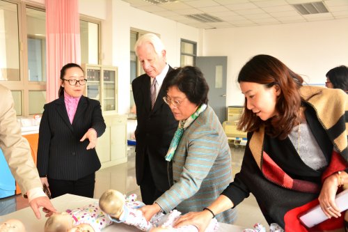 下午,在公共衛(wèi)生與護(hù)理學(xué)院專業(yè)主任吳景芳老師及實(shí)踐辦主任葉素梅老師的陪同講解下,Dr.Walker一行饒有興致地參觀了二級(jí)學(xué)院的各個(gè)實(shí)訓(xùn)室,并與院長(zhǎng)陳力華、調(diào)研員曹士勛等相關(guān)人員進(jìn)行了深入溝通與探討。