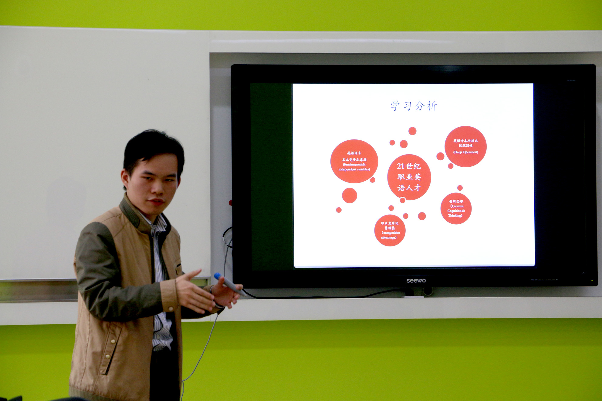 外教們在教學(xué)沙龍中展示了他們根據(jù)所在的教學(xué)環(huán)境所選擇的多樣化教學(xué)活動(dòng);中方英語教師們展示了針對職業(yè)院校學(xué)生外語學(xué)習(xí)中因材施教所取得的成果。另外,針對我院英語教學(xué)情況,中外教師在講述各自課程目標(biāo)與內(nèi)容的同時(shí),對不同的教學(xué)模式進(jìn)行了對比分析,取長補(bǔ)短,以進(jìn)一步提高教學(xué)質(zhì)量。