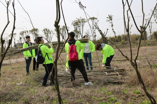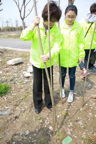 志愿者們在校團委書記曹曉莉老師的帶領下,來到聞道園開始了本次的植樹活動。隨著溫度的升高,晶瑩的汗水漸漸爬上了志愿者的額頭,但這絲毫不減大家勞動的熱情。大家分工協(xié)作,手握工具,抗苗散苗,揮鍬鏟土,扶苗平土,每個環(huán)節(jié)都踏實認真,忙的熱火朝天。經(jīng)過一上午緊張的勞動,5000棵樹苗整整齊齊地在聞道園“安家落戶”,為河畔添上一片新綠,使寶山多一抹色彩。