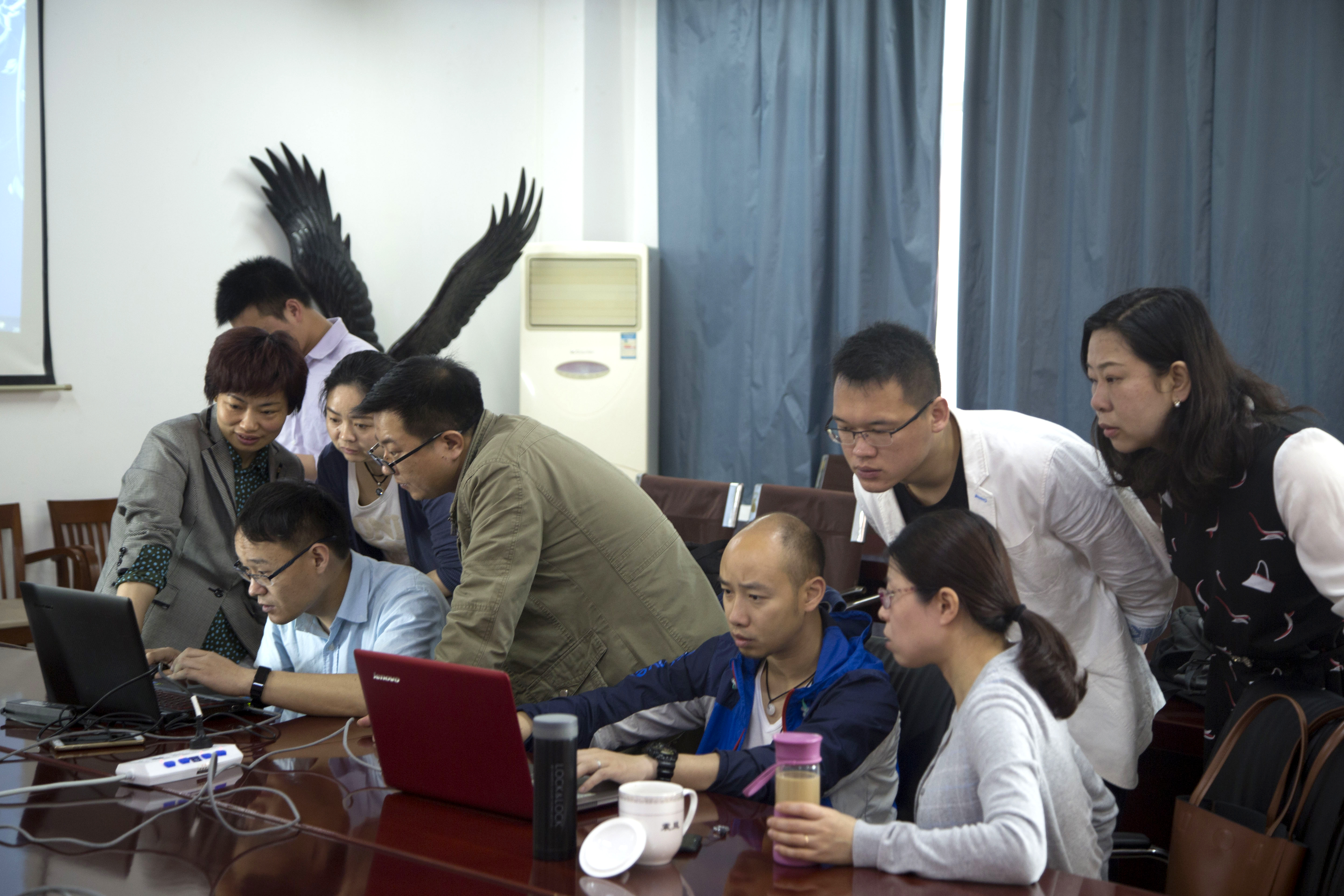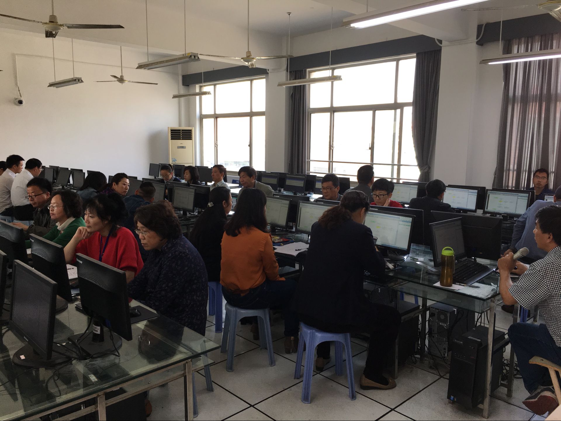 上圖為各部門、學(xué)院教職工在機(jī)房進(jìn)行實(shí)操練習(xí)