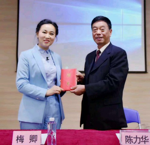 學院實踐辦主任葉素梅老師向大家介紹梅卿傳媒集團的基本情況及與我院展開校企合作的情況。會上,陳力華院長做了重要講話,他首先介紹了梅卿女士的情況。他說,梅卿女士是上海傳媒界有一定知名度的主持人、制片人、雜志出品人、作家,也是一位企業(yè)家,聘請企業(yè)的專家擔任客座教授,這是學校開門辦學、適應市場進行人才培養(yǎng)邁出的一大步伐,通過此舉,將為我院帶來良好的校企合作氛圍,有利于學生的教學實踐和就業(yè),實現人才培養(yǎng)與人才市場的有效對接,為學校的發(fā)展充注活力。同時,梅卿女士作為文化傳播者,通過這次講座,傳播電影文化,傳播社會主義核心價值觀,指導學生學習和生活,對于校園文化建設有著極其重要的意義。隨后陳力華院長為梅卿女士頒發(fā)了客座教授《聘任書》。