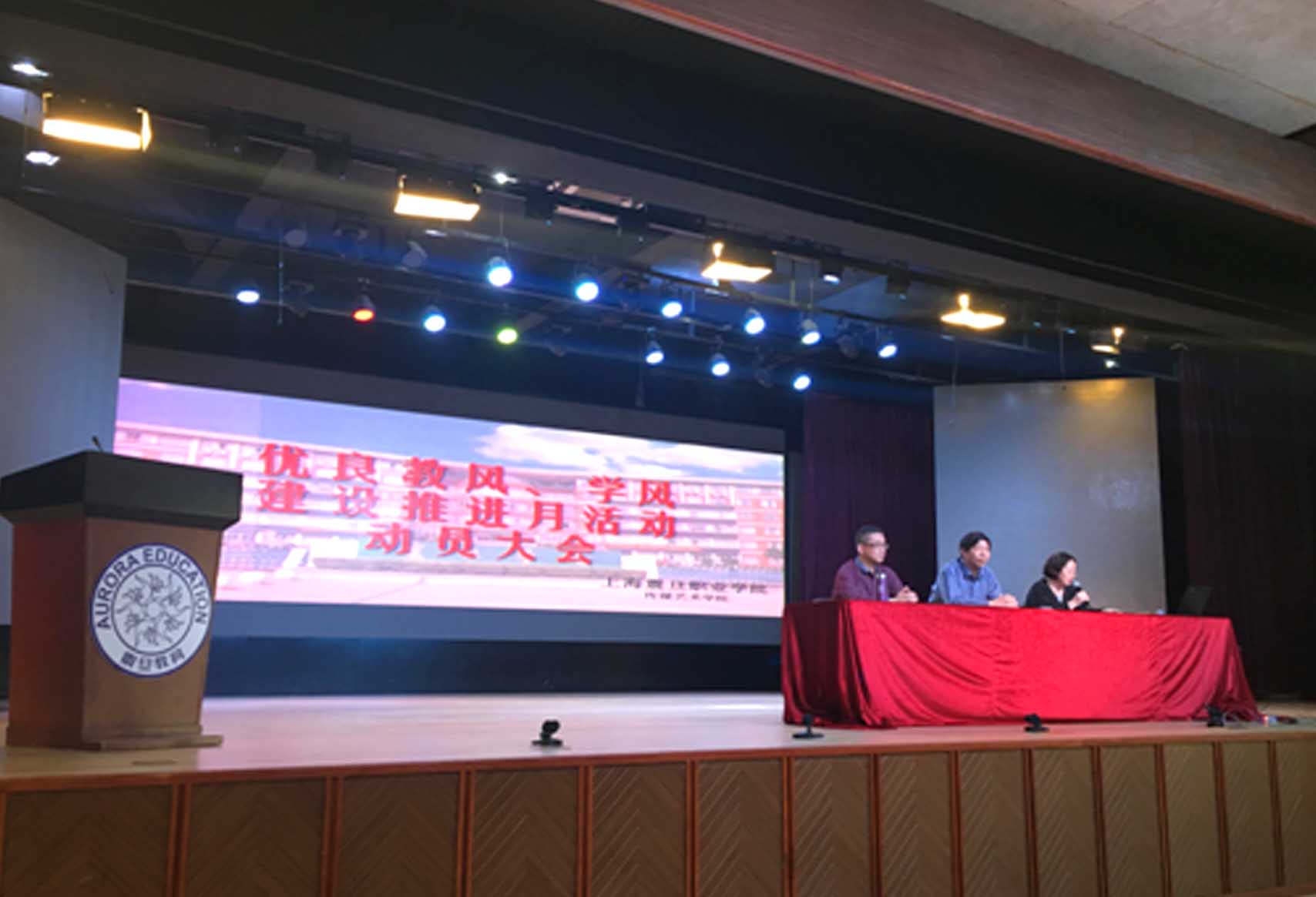 4月24日,傳媒藝術(shù)學(xué)院在大禮堂舉行“優(yōu)良教風(fēng)、學(xué)風(fēng)建設(shè)推進(jìn)月”學(xué)生動(dòng)員大會(huì),學(xué)院領(lǐng)導(dǎo)張繼平、葉沖、江桂梅出席,全體輔導(dǎo)員老師及15、16級(jí)學(xué)生參加會(huì)議。