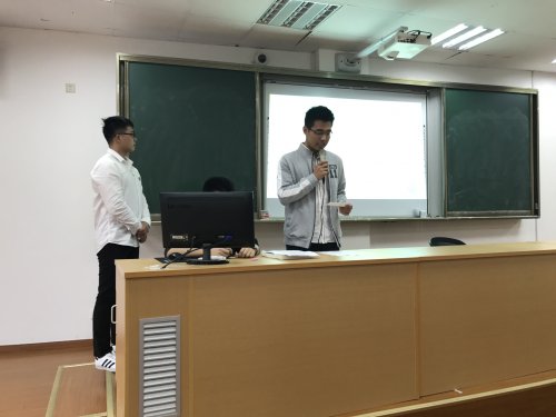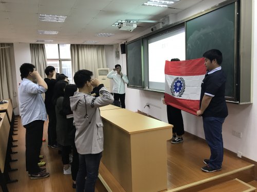 會議在莊嚴(yán)的國歌聲中開始,各部門部長依次上臺對自己部門的職能作詳述。各部門的新會員上臺佩戴徽章并莊嚴(yán)地面對會旗宣誓就職。緊接著,新入會成員代表竇金博發(fā)表了就任感言,表達了新成員對于新責(zé)任和新挑戰(zhàn)充滿激情和斗志的期望,和我們所有新成員能配合各部部長做好自治管理委員會各項工作的堅強決心。