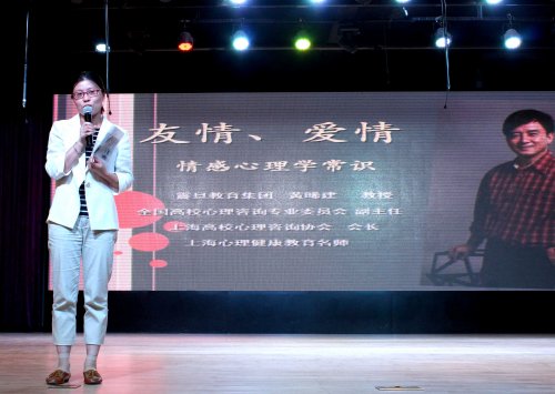 上海震旦職業(yè)學(xué)院2017年度大學(xué)生心理健康教育活動月系列講座之一——《友情與愛情》——5月15日下午16:30在校大禮堂舉行,主講人為震旦教育集團(tuán)黨委書記黃晞建教授。校心理健康教育中心全體教師和全校600余名學(xué)生聆聽了此次講座。講座由心理健康教育中心主任毛燕靜老師主持。