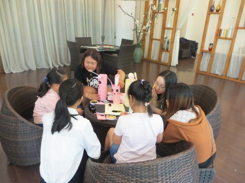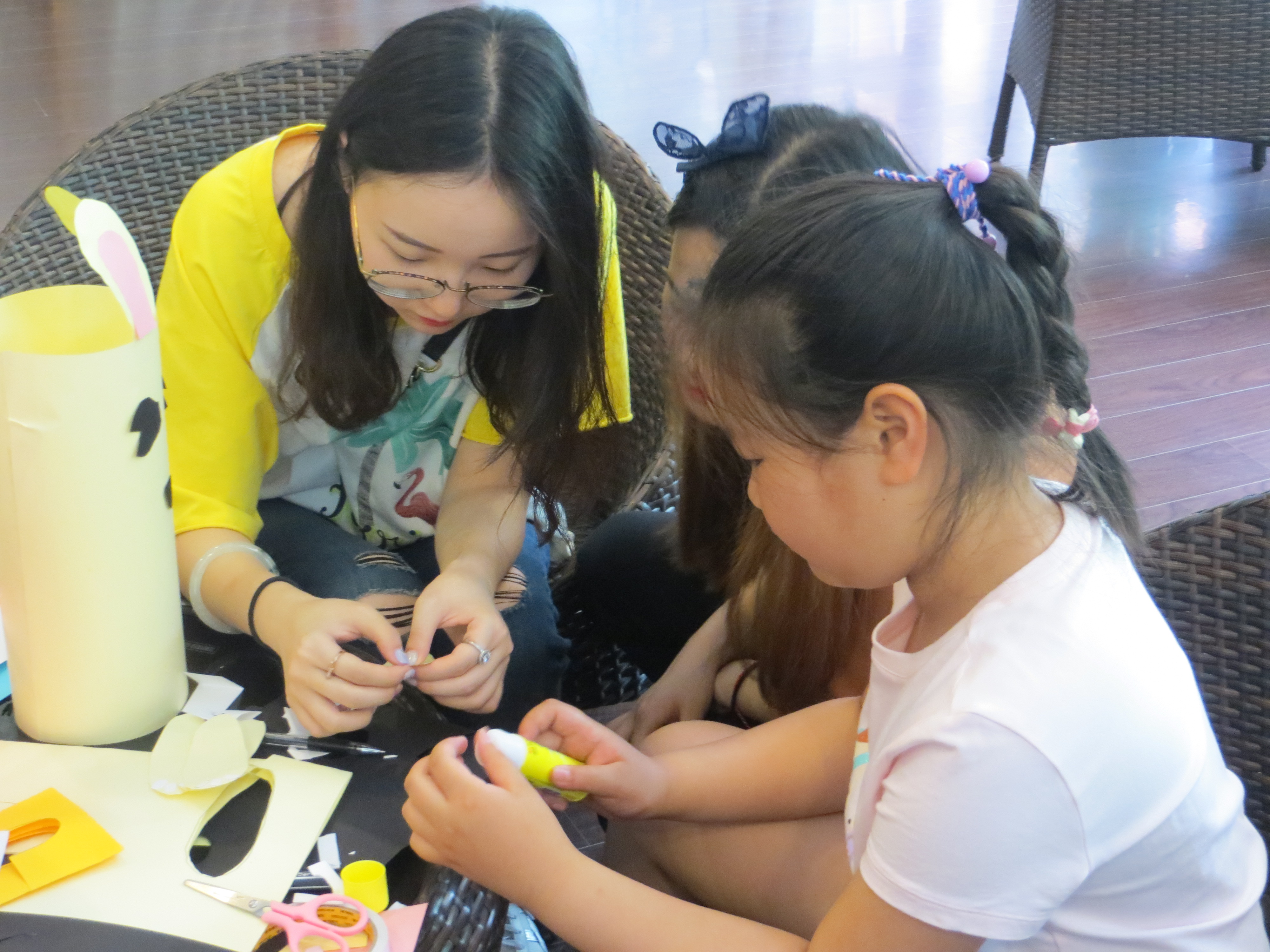 這個項(xiàng)目采用播放視頻、兒童游戲、手工制作、講故事等與學(xué)生互動,生動有趣的向同學(xué)們體現(xiàn)專業(yè)特色。手工制作室女孩們最喜歡的模塊,孩子們和老師一起做出漂亮的玩具擺件,成就感爆棚。
