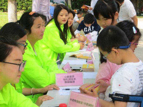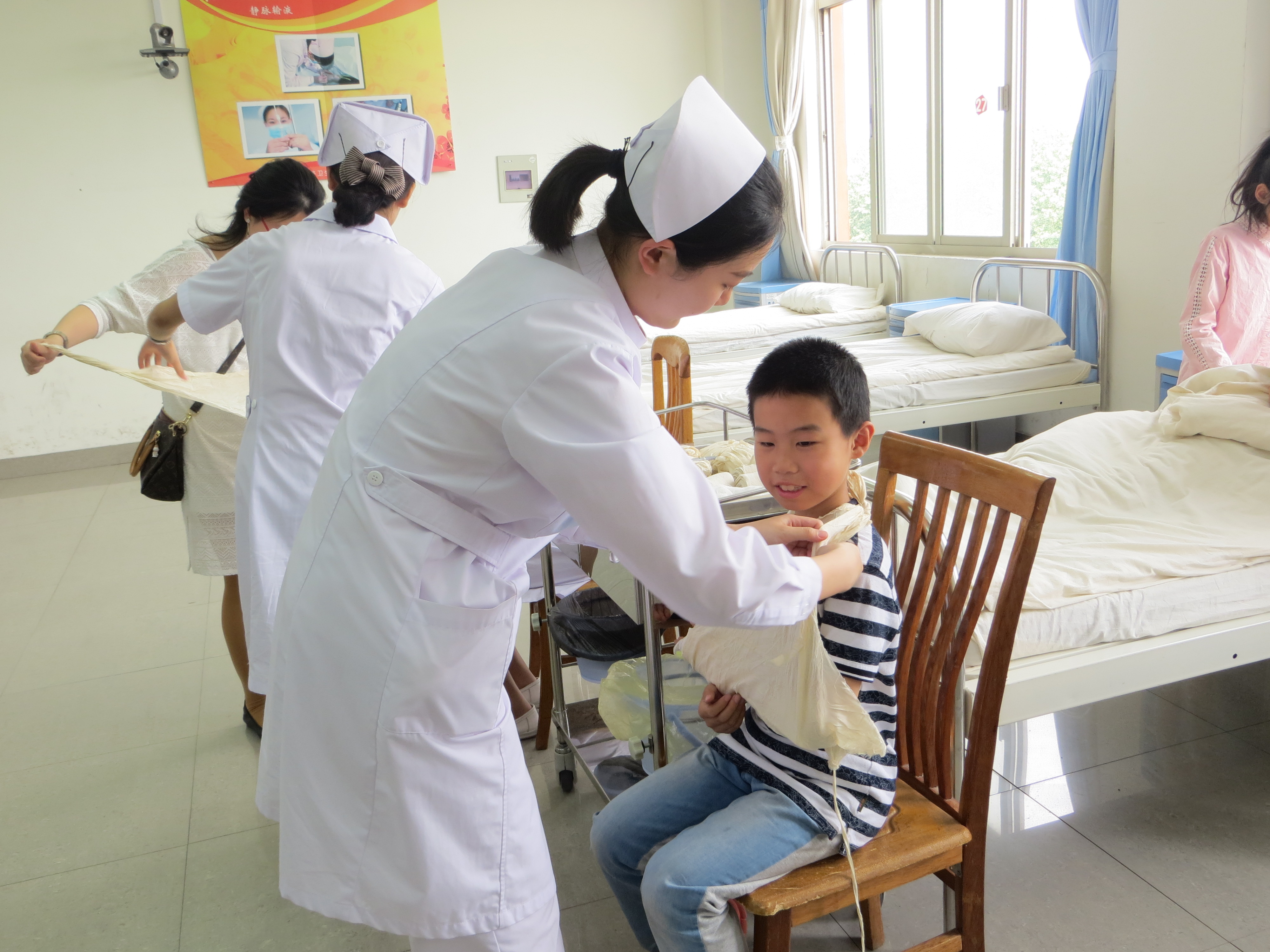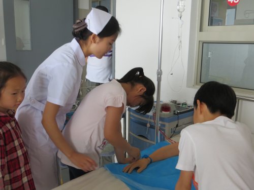 心肺復(fù)蘇術(shù)(CPR)是針對呼吸心跳停止的急危重癥病人所采取的搶救關(guān)鍵措施。包扎固定是外傷現(xiàn)場應(yīng)急處理的重要措施之一。靜脈輸液是利用大氣壓和液體靜壓原理將大量無菌液體、電解質(zhì)、藥物由靜脈輸入體內(nèi)的方法,是日常治療中常見的護(hù)理操作。在這幾個項(xiàng)目中,孩子們和家長一起學(xué)習(xí)如果在緊急情況下施救、包扎,學(xué)到了非常實(shí)用的技術(shù)。體驗(yàn)過程中,家長和孩子們不僅學(xué)到了實(shí)用的急救技能,還親自感受到白衣天使的神圣,也體會到他們的辛苦。