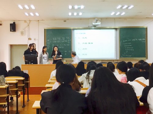 錢源偉院長在課堂上與同學們進行觀摩感受交流