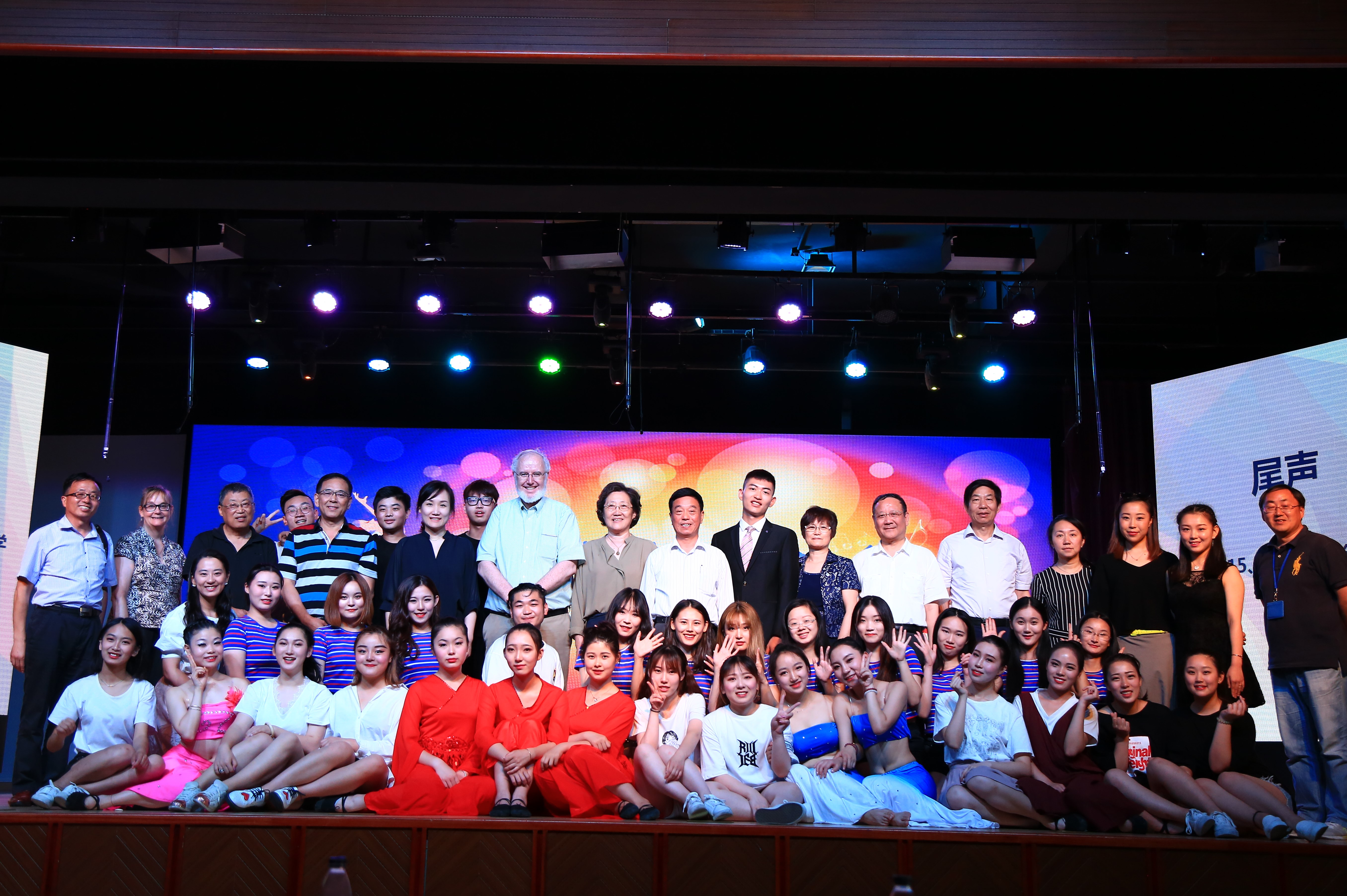 演出結(jié)束后,陳力華校長講話,他首先祝賀同學(xué)們演出成功,對東方電影學(xué)院所取得的教學(xué)成果給予了肯定。陳校長的點(diǎn)評短小精悍、寓意深刻、妙趣橫生,不時贏得師生們熱烈掌聲。他勉勵同學(xué)們再接再厲,做出更大的成績!最后領(lǐng)導(dǎo)們和嘉賓一起登臺與師生們合影留念。