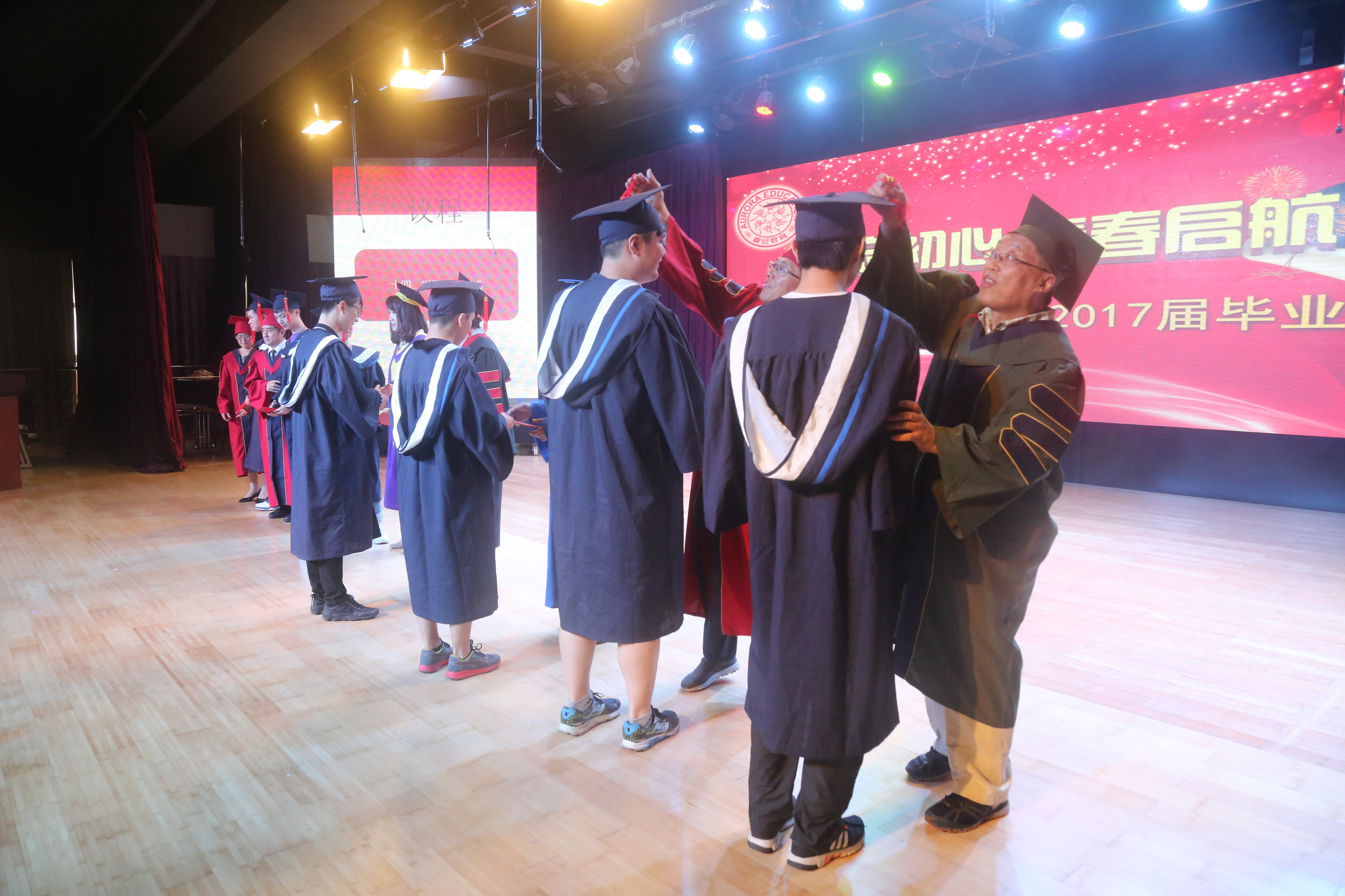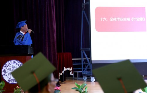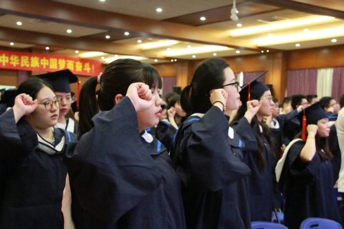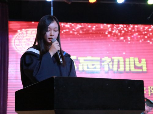 授證儀式后,在朱書晴同學(xué)的領(lǐng)誓下,全體畢業(yè)生們進(jìn)行了畢業(yè)宣誓。全體畢業(yè)生在陳校長的帶領(lǐng)下高唱《畢業(yè)歌》。在歌聲中2017屆畢業(yè)典禮順利結(jié)束。