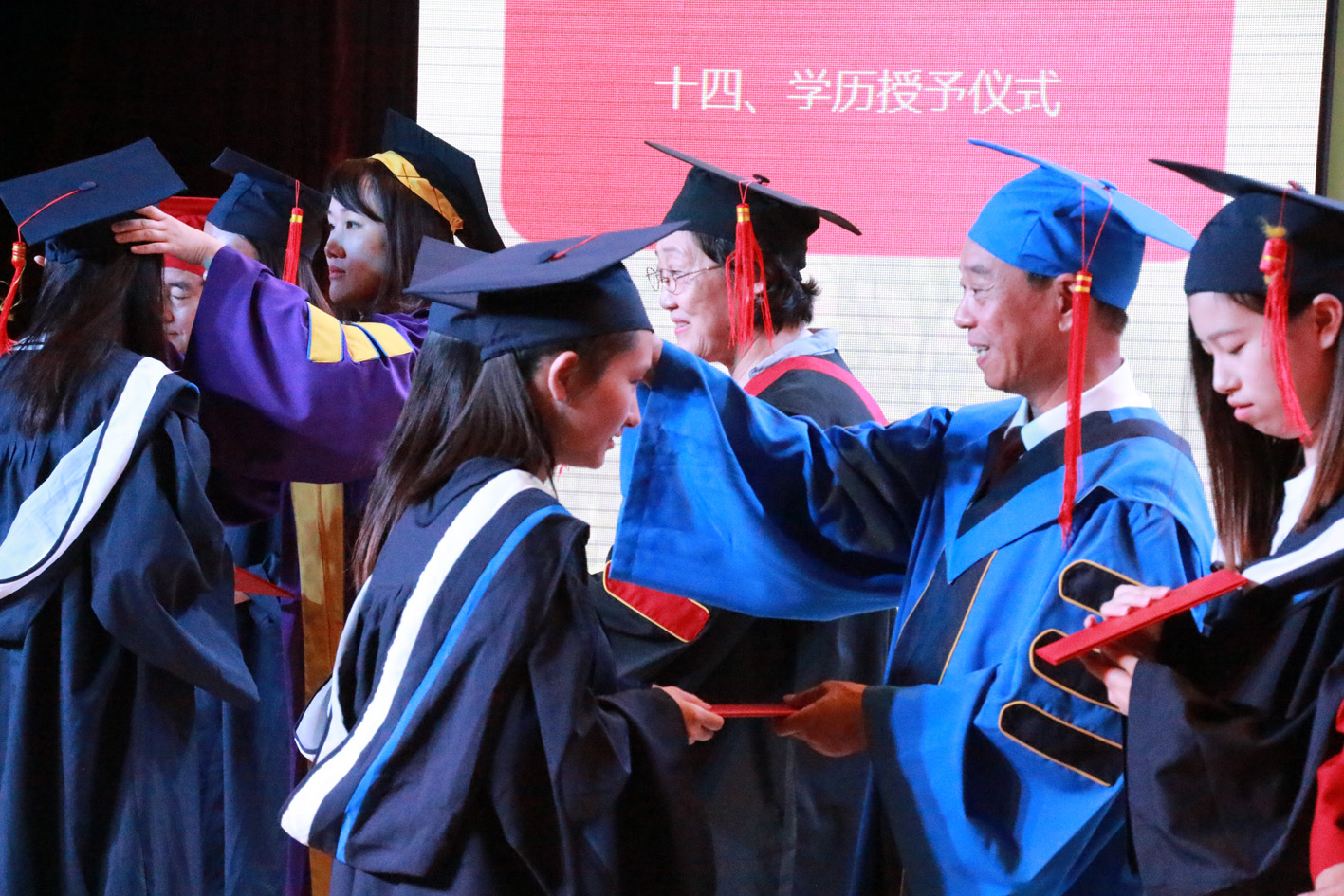 我校1240名畢業(yè)生滿懷喜悅,在隆重而熱烈的氛圍中依次登臺接受了學(xué)歷授予儀式,校領(lǐng)導(dǎo)和二級學(xué)院院長親自向每一位畢業(yè)生頒發(fā)了畢業(yè)證書,并留下了難忘的合影,給全體2017屆畢業(yè)生留下了深刻的印象和美好的回憶。