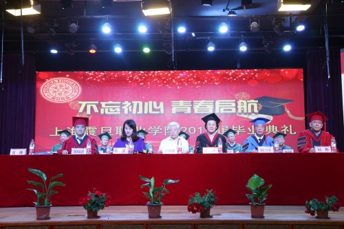 2017年6月19日上午9:00,我校2017屆畢業(yè)典禮在大禮堂召開。名譽(yù)校長黃鼎業(yè)教授、震旦教育基金會理事長張惠莉、震旦教育集團(tuán)董事長張沈、校黨委書記黃晞建、校長陳力華、校黨委副書記夏臻、副校長劉彬,以及各二級學(xué)院院長、黨總支書記、任課教師及畢業(yè)班輔導(dǎo)員出席畢業(yè)典禮。部分上海市優(yōu)秀畢業(yè)生家長代表受邀參加畢業(yè)典禮。