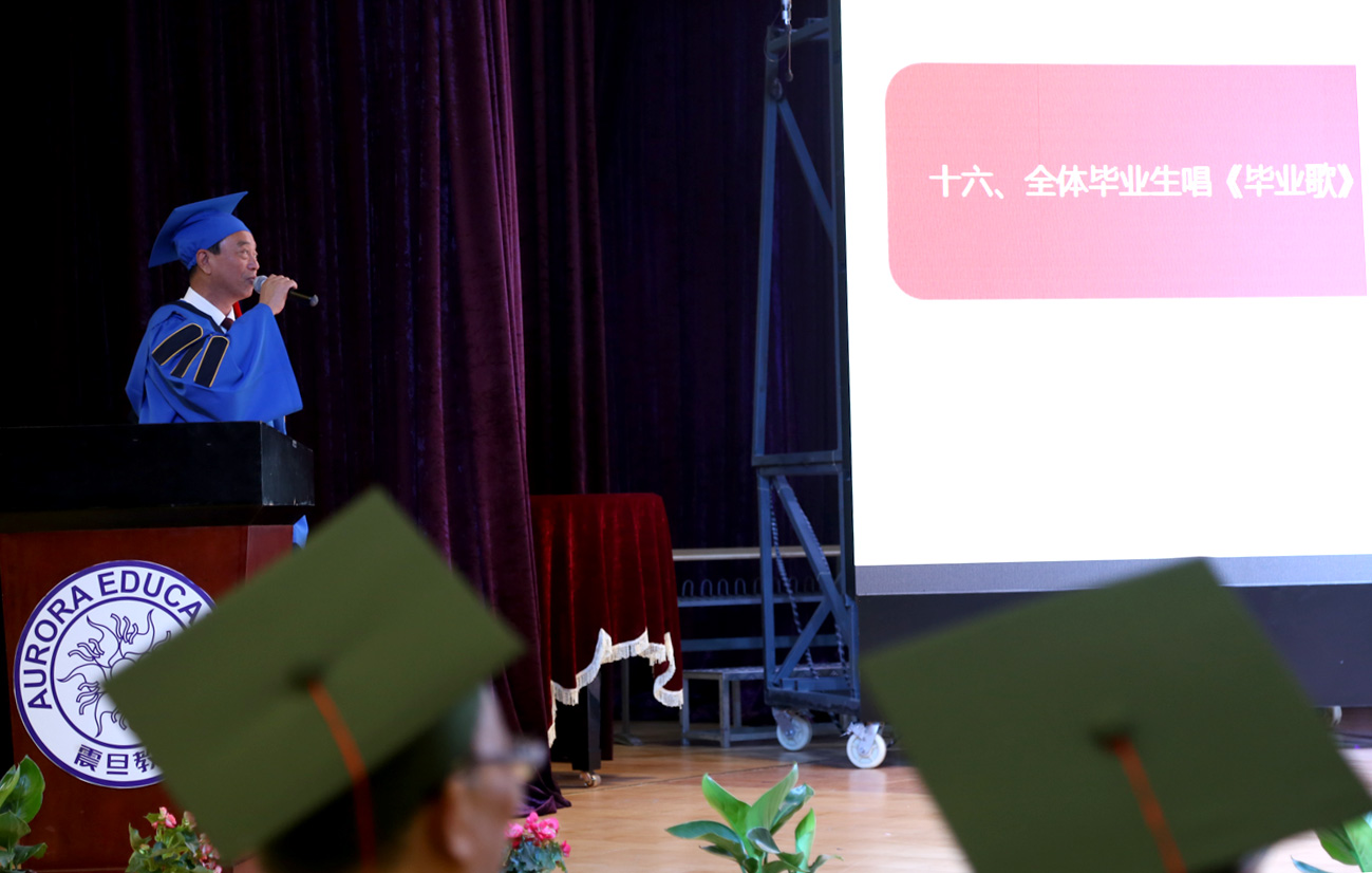 最后,校長陳力華向全體畢業(yè)生們作了重要講話。陳校長對2017屆畢業(yè)生歷年來所取得的榮譽(yù),做出了肯定,陳校長要求畢業(yè)生:走向社會要認(rèn)真踏實(shí)做事,做有擔(dān)當(dāng)有責(zé)任的人;希望畢業(yè)生在人生旅途上志存高遠(yuǎn),敢于擔(dān)當(dāng)!堅(jiān)持建設(shè)祖國、服務(wù)人民的理想信念;堅(jiān)持積極進(jìn)取、樂觀向上的人生態(tài)度;堅(jiān)持正直負(fù)責(zé)、求真務(wù)實(shí)的優(yōu)秀品格;堅(jiān)持胸懷坦蕩、淡泊名利的可貴品質(zhì)。要求同學(xué)們堅(jiān)定信念、堅(jiān)守抱負(fù)、堅(jiān)持奮斗!陳校長希望同學(xué)們要繼續(xù)傳承震旦精神,做崇尚科學(xué)的人;希望同學(xué)們?;丶铱纯?,做常懷感恩的人,他希望同學(xué)們要感恩幫助你的人、感恩關(guān)懷你的人、感恩鼓勵你的人。