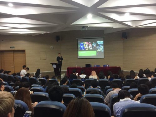 博思中國上海龍之谷數(shù)碼有限公司校企合作總監(jiān)王愷,為同學(xué)們介紹博思中國上海龍之谷數(shù)碼公司的情況,博思中國公司從事游戲研發(fā)、服務(wù)外包及人才培訓(xùn)的綜合集團公司。上海龍之谷數(shù)碼科技有限公司與多家著名游戲公司是合作伙伴關(guān)系,資源很豐富,同學(xué)們對演講反映很熱烈。