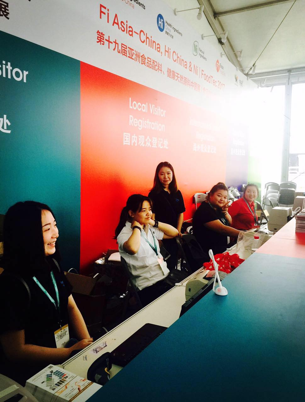這次實(shí)訓(xùn)是參加在“上海新國(guó)際博覽中心”舉行的第十七屆世界制藥原料展中國(guó)展的志愿者服務(wù)。15級(jí)藥學(xué)專業(yè)同學(xué)于6月19日下午在國(guó)際博覽中心接受各自崗位的培訓(xùn),6月20日到6月22日進(jìn)行志愿者服務(wù)。本次參加志愿者服務(wù)的學(xué)生有200余人,主要崗位分別有管理通道、自助機(jī)、服務(wù)臺(tái)和填表臺(tái)。填表臺(tái)作為觀眾入場(chǎng)的第一關(guān)卡,志愿者要耐心的指導(dǎo)各位觀眾通過(guò)二維碼進(jìn)行注冊(cè),對(duì)于年紀(jì)較大的不善使于用微信的觀眾幫助他們填表完成注冊(cè)。注冊(cè)完成的觀眾可以去服務(wù)臺(tái),服務(wù)臺(tái)的同學(xué)會(huì)根據(jù)其填寫(xiě)的基本信息錄入電腦,打印觀眾證,自助服務(wù)機(jī)同學(xué)的則幫助進(jìn)行自助打印。獲取觀眾證后的觀眾通過(guò)安檢,管理通道的同學(xué)對(duì)觀眾證上條碼的掃描,鑒別觀眾證的真?zhèn)?。各崗位同學(xué)嚴(yán)守職責(zé),服從安排,為入場(chǎng)的觀眾們提供最優(yōu)質(zhì)的服務(wù),得到主辦方高度評(píng)價(jià)。