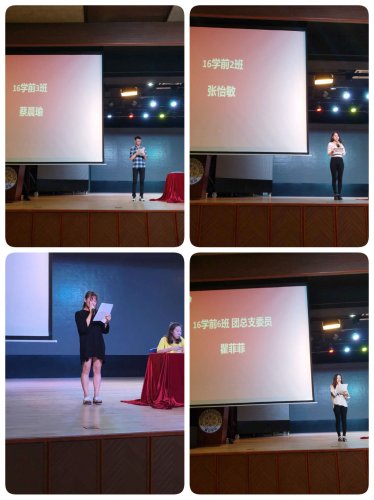 大會(huì)開始,來(lái)自16學(xué)前2班的施琳、張怡敏同學(xué),16學(xué)前3班的蔡晨瑜同學(xué)和16學(xué)前6班的瞿菲菲同學(xué)分別從學(xué)習(xí)與實(shí)踐、藝術(shù)類發(fā)展、學(xué)習(xí)生活和團(tuán)總支社會(huì)實(shí)踐的等角度進(jìn)行發(fā)言。副院長(zhǎng)李杰老師對(duì)他們的發(fā)言進(jìn)行了總結(jié),希望大家以這幾位同學(xué)為榜樣,找準(zhǔn)定位,堅(jiān)定目標(biāo)。