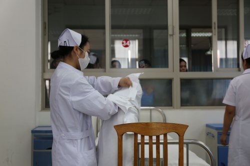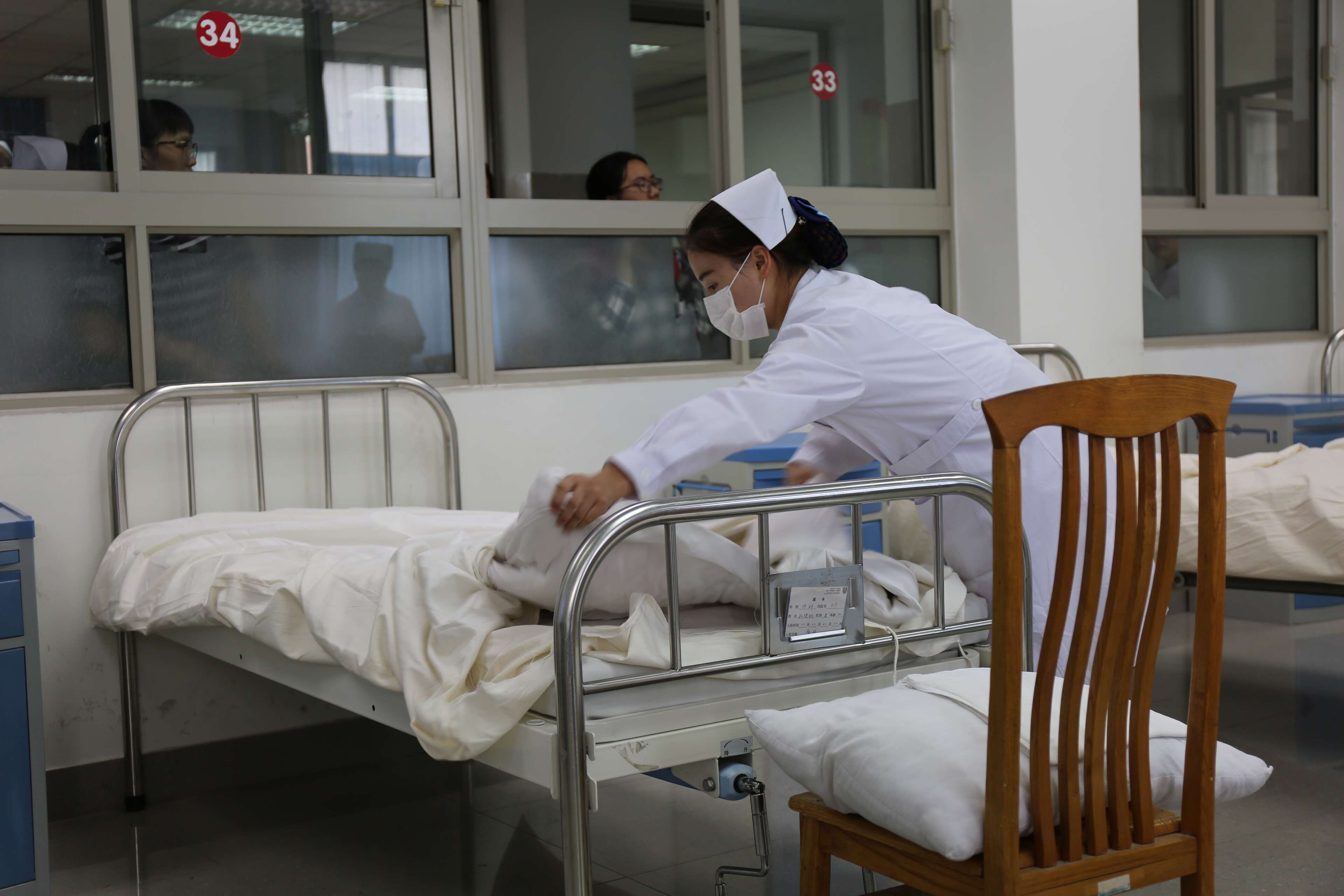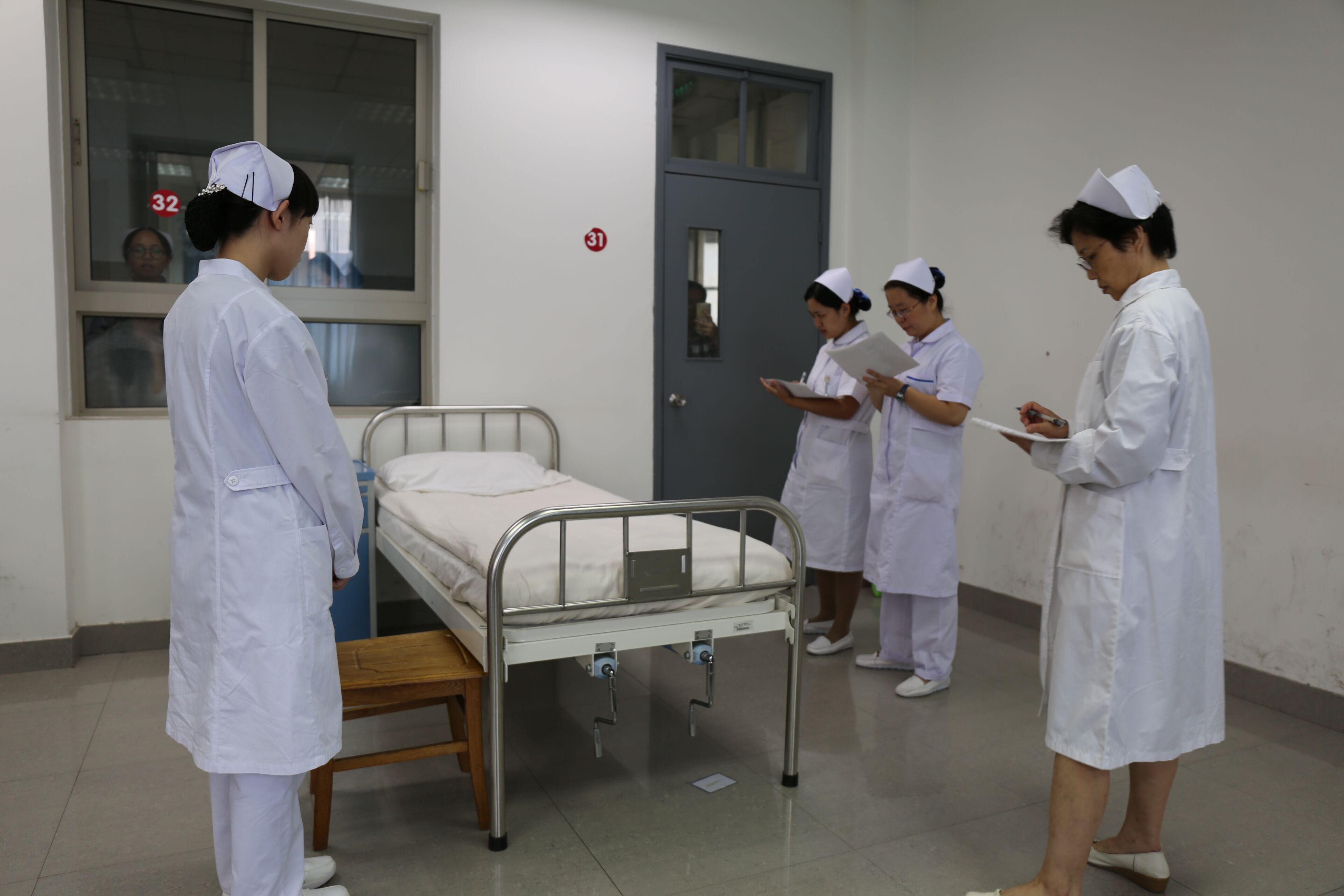 本次護理技能大賽參賽對象為16級護理專業(yè)學(xué)生,每班4名,共32名參賽選手。比賽項目是鋪備用床,比賽地點在1-510實訓(xùn)教室,擔任本次比賽的評委老師分別是許愛芝老師、曹婷老師和王云老師。