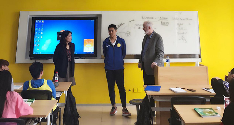 在課堂上,Dr. Donaldson首先向同學(xué)們做了簡短的自我介紹,隨即邀請全班同學(xué)上臺用英語做口頭展示,并就國際課程學(xué)習(xí)情況和學(xué)習(xí)動機等問題進(jìn)行了現(xiàn)場交流。隨后,Dr. Donaldson進(jìn)一步指出,保持對學(xué)習(xí)的專注,發(fā)揚團(tuán)隊合作精神是大學(xué)成功學(xué)習(xí)的重要因素。最后,他預(yù)祝同學(xué)們學(xué)業(yè)有成。