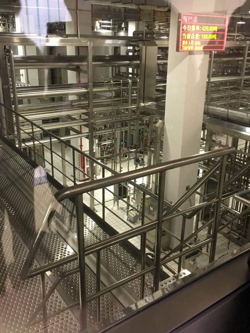 光明乳業(yè)華東中心工廠是目前世界最大的乳品單體工廠,投資14.21億元,占地約232畝,共有62條生產(chǎn)線,日產(chǎn)2600噸。在講解員的引領(lǐng)下,同學(xué)們對(duì)光明各產(chǎn)品的特點(diǎn)和尖端科技在乳品方面的應(yīng)用有了初步了解;再沿著1.6公里的參觀通道深入工廠內(nèi)部學(xué)習(xí),縱橫交錯(cuò)的管道、巨大挺立的配料罐、源源不斷的包材,使同學(xué)們對(duì)乳品生產(chǎn)工藝有了進(jìn)一步的認(rèn)識(shí)??吹骄薮蟮能囬g在整潔的環(huán)境下井然有序、分秒不停地生產(chǎn),在場(chǎng)同學(xué)無(wú)不感到驚嘆與震撼。