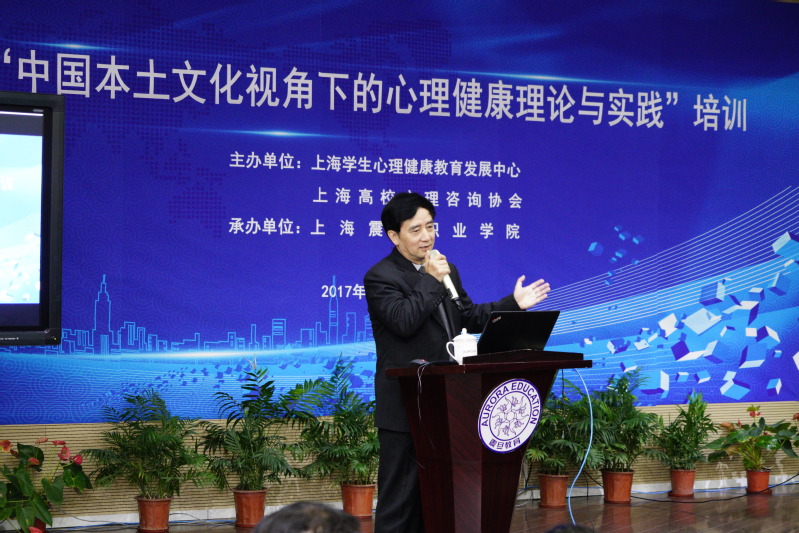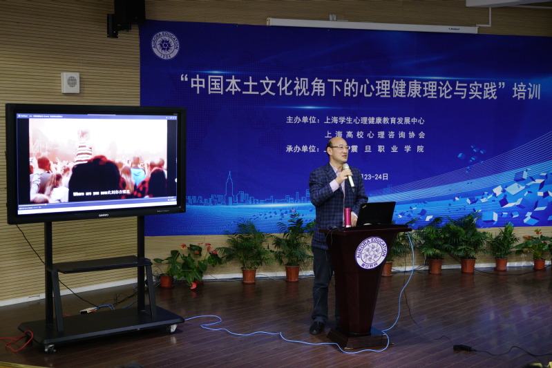 為深入學(xué)習(xí)落實(shí)黨的十九大會(huì)議精神,貫徹落實(shí)全國(guó)和上海高校思政工作會(huì)議精神,推進(jìn)本土心理健康教育的發(fā)展,由上海學(xué)生心理健康教育發(fā)展中心和上海高校心理咨詢(xún)協(xié)會(huì)主辦、上海震旦職業(yè)學(xué)院承辦的“中國(guó)本土文化視角下的心理健康理論與實(shí)踐”培訓(xùn)班在震旦職業(yè)學(xué)院體藝樓報(bào)告廳隆重舉行。本次培訓(xùn)班為期兩天,共有四位教授擔(dān)任主講嘉賓,他們分別是上海市文史研究館副館長(zhǎng),上海市高校心理咨詢(xún)協(xié)會(huì)副理事長(zhǎng)王群教授,上海中醫(yī)藥大學(xué)學(xué)工部副部長(zhǎng)、心理咨詢(xún)與發(fā)展中心主任成琳老師,上海立信會(huì)計(jì)金融學(xué)院心理中心主任、上海高校心理咨詢(xún)協(xié)會(huì)副會(huì)長(zhǎng)劉純姣教授和上海出版印刷高等專(zhuān)科學(xué)校思政部主任馬前鋒教授。培訓(xùn)班歷時(shí)2天,近100名學(xué)員來(lái)自全市20個(gè)學(xué)校。