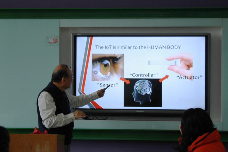 首先,Lee教授為學院全體專業(yè)教師介紹物聯(lián)網(wǎng)系統(tǒng)構(gòu)成,并詳細講述了傳感器、控制器和執(zhí)行器三個部件的結(jié)構(gòu)組成和工作原理,并展示他在我校為大一物聯(lián)網(wǎng)中美合作班學生授課項目成果---智能控制汽車,主要教學模塊包含:電路設計、芯片編程、產(chǎn)品測試等,Lee教授在上課期間,將班級同學劃分若干小組,各小組學生共同討論技術(shù)方案,協(xié)同完成各自智能控制汽車項目,取得了很好的教學效果。同時。他也向大家展示他在美國CBU指導大四學生所做的畢業(yè)設計---草地噴水裝置。Lee教授還介紹了世界主要汽車制造商研發(fā)無人汽車的進展情況。