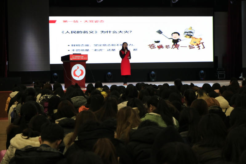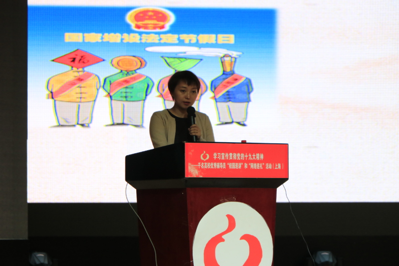 為貫徹落實(shí)中央關(guān)于推動(dòng)十九大精神進(jìn)校園、進(jìn)網(wǎng)絡(luò)等“七進(jìn)”的要求,由教育部主辦的“學(xué)習(xí)宣傳貫徹黨的十九大精神——千名高校優(yōu)秀輔導(dǎo)員‘校園巡講’和‘網(wǎng)絡(luò)巡禮’活動(dòng)”于2017年12月14日晚六點(diǎn)在我校大禮堂隆重舉行。活動(dòng)由學(xué)工部部長毛燕靜主持,校黨委副書記夏臻出席了本次巡講活動(dòng)。思政教研室主任魯學(xué)軍、全體輔導(dǎo)員、思政課教師、學(xué)生代表等1000余人聆聽了此次報(bào)告。