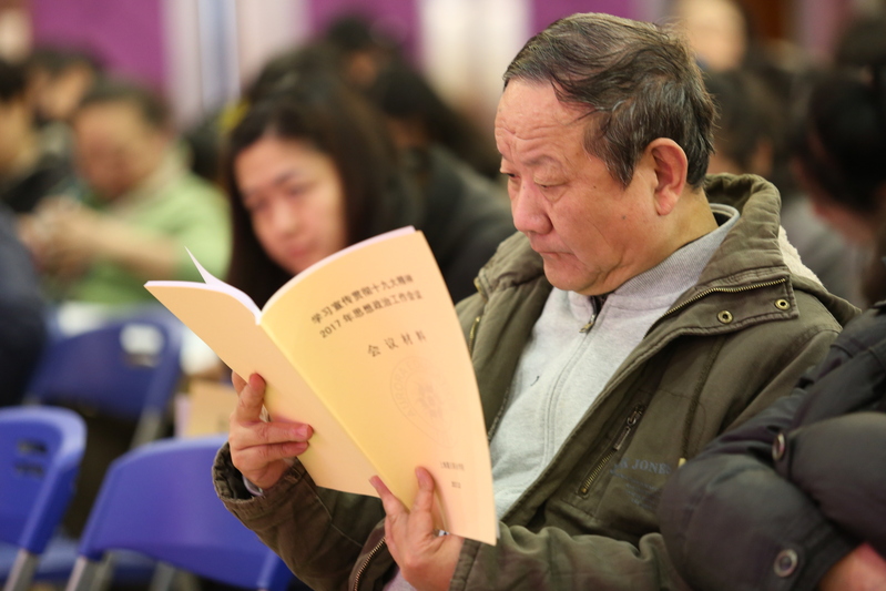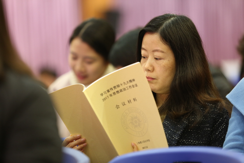 一是學(xué)校政治思想工作的回顧。他指出我校在認(rèn)真學(xué)習(xí)宣傳貫徹習(xí)近平總書記十九大報告精神的同時,始終把落實全國高校思想政治工作會議精神和中央31號文件、78號文要求,作為學(xué)習(xí)宣傳貫徹十九大精神的具體體現(xiàn),緊密結(jié)合學(xué)校實際,做了大量卓有成效的工作:完善了思想政治工作的領(lǐng)導(dǎo)組織;加強基層黨組織建設(shè)和黨員教育;認(rèn)真學(xué)習(xí)宣傳貫徹十九大精神,制訂了《上海震旦職業(yè)學(xué)院思想政治工作3D方案》;構(gòu)建思政課程和課程思政體系;鞏固發(fā)展校園文化,再創(chuàng)文明單位;加強思想政治教育專業(yè)隊伍建設(shè)。同時,由教師工作部和學(xué)生工作部分別完成教職工和學(xué)生的思想政治狀況調(diào)查問卷,從調(diào)查問卷情況看,我校師生整體思想政治素質(zhì)良好,說明我校全面堅持黨的思想政治教育,取得了很好的成效。