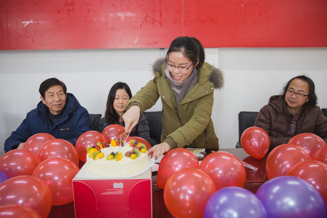伴隨著一曲《生日快樂歌》唱響,傳媒藝術學院集體生日會拉開帷幕,學院工會組長蔡婷嬉老師捧上鮮美蛋糕,并組織大家集體合影。學院集體生日會上,學院院長、黨總支書記張繼平同志首先表達了集體生日會的意義,他強調學校為了增強教職工凝聚力,積極鼓勵學院集體過生日,并給予一定的經(jīng)費支持,今天我們利用年終總結交流會之際,一起共同慶祝全體教職工的生日,互祝生日快樂!學校人事處副處長錢毅老師代表學校工會也給全體教職工送上了生日祝福。最后,由當天過生日的輔導員邵慧老師為大家切蛋糕。