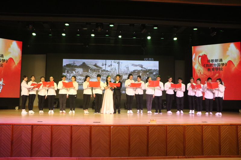 展演由17學(xué)前3的劉烊的一首《power wolf》拉開帷幕。在舞蹈板塊中, 16學(xué)前7班的楊怡雯同學(xué)表演的藏族民間舞《瑪吉阿米》,16學(xué)前4班的張星熠同學(xué)表演的中國舞《詠荷》,16級(jí)陳茹韞、師文靜、吳仙紅3位同學(xué)表演的舞蹈《風(fēng)箏誤》,都使觀眾們眼前一亮,17學(xué)前5班曹雨暉同學(xué)表演的舞蹈《樂悠游·花兒》,16級(jí)的趙云慧等同學(xué)表演的啦啦操,迎來觀眾們一陣陣的喝彩與掌聲;來自16學(xué)前教育2班的張怡敏同學(xué)展示的一節(jié)小班科學(xué)活動(dòng)的說課《好玩的水》,體現(xiàn)了說課對(duì)提高教師的備課質(zhì)量、教學(xué)效率和教師的組織能力、表達(dá)能力等的重要作用;英語故事板塊中,16學(xué)前7班吳雅菲《The Princess and Pea》 和17學(xué)前3 班欒婷婷《The Monster is Coming》,用繪本的英文故事淋漓盡致地表演,可全面幫助孩子建構(gòu)精神,培養(yǎng)多元智能;16學(xué)前6班劉璇宛如天籟的歌曲《關(guān)雎》和17學(xué)前6班李思甜《有形的翅膀》更是體現(xiàn)了教育學(xué)院學(xué)生的扎實(shí)的聲樂功底;由16、17級(jí)陳祎陽等同學(xué)帶來的琵琶、古箏、鋼琴、架子鼓《春雨》《林沖夜奔》等等的曲目,樂聲悠揚(yáng),溢滿了整個(gè)大禮堂,讓人陶醉,也將整個(gè)晚會(huì)推至高潮。最后,鏗鏘有力的詩歌朗誦《我的中國夢(mèng)》為本屆才藝大賽展演畫下一個(gè)完美的句號(hào)。
