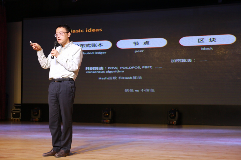 4月27日下午,《中國偉業(yè)·上海制造》系列講座2018年首場講座開講。上海市信息化青年人才協(xié)會名譽會長、上海市信息化企業(yè)家協(xié)會會長戴劍飚教授應邀作《區(qū)塊鏈——過去與未來》專題講座。校長陳力華、各職能部門、各學院師生500余人參加了講座學習。講座由校黨委書記黃晞建主持。