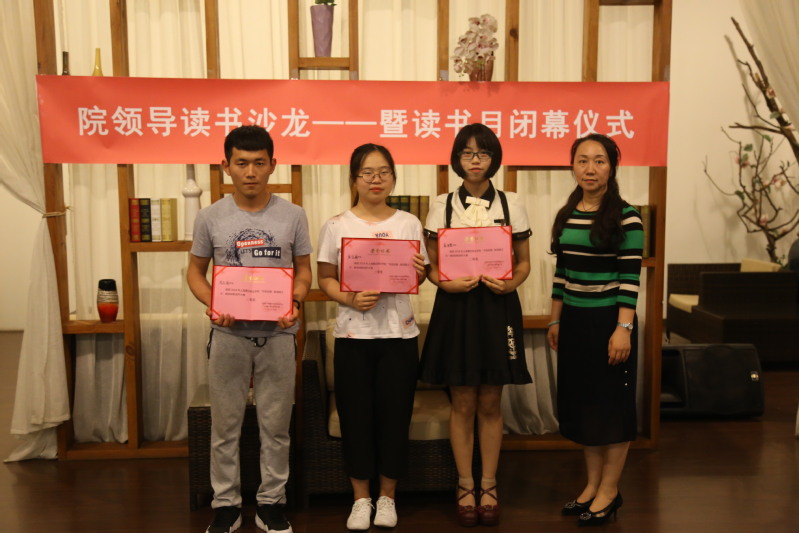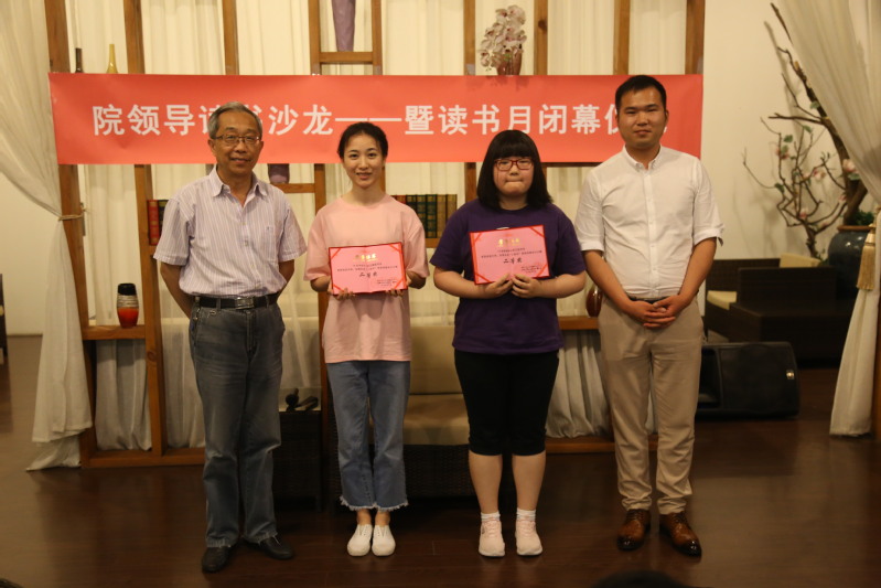 分享結(jié)束后,張健館長(zhǎng)宣布了讀書(shū)月原創(chuàng)詩(shī)歌創(chuàng)作大賽及海報(bào)創(chuàng)意設(shè)計(jì)大賽的獲獎(jiǎng)名單,陳力華院長(zhǎng)、學(xué)院有關(guān)領(lǐng)導(dǎo)及三新公司劉毛毛經(jīng)理為同學(xué)們進(jìn)行了頒獎(jiǎng)。