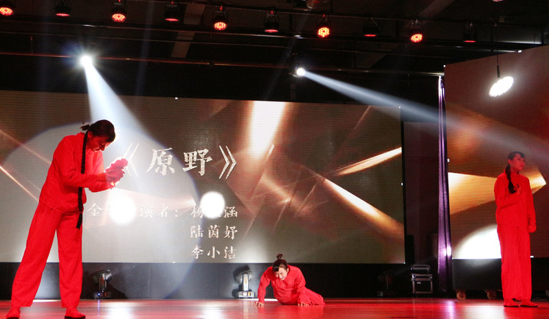 這次教學(xué)成果展示是東方電影學(xué)院結(jié)合專業(yè)教學(xué)進(jìn)行的又一次教學(xué)實踐活動,從最初的籌備到最后的展示,在整個準(zhǔn)備過程中,老師和學(xué)生都投入了極大的熱情和心血。特別是戲劇影視表演專業(yè)副主任宋藝、形體教師高敏、表演教師胡運佳、臺詞教師賀婭妮、陳彥云等老師對學(xué)生進(jìn)行了耐心細(xì)致的指導(dǎo),表演專業(yè)的同學(xué)們刻苦排練,認(rèn)真做好每一個動作、練好每一個細(xì)節(jié),她們的膝蓋在地板上碰的青一塊紫一塊,汗水浸濕了練功服,常常是排練到深夜。經(jīng)過他們精雕細(xì)琢,把課堂教學(xué)打造成為一個個藝術(shù)精品。在這次展示演出中,宋藝、高敏、胡運佳三位老師與學(xué)生一起排練,同臺表演了精彩的舞蹈節(jié)目。音像技術(shù)專業(yè)和學(xué)校電教室的老師也給予了大力的支持,比如杜聞老師、顧旭君同學(xué)為舞臺背景設(shè)計制作加班加點,何江南老師從排練到演出全程跟蹤等等,表現(xiàn)出良好的團(tuán)隊合作精神。