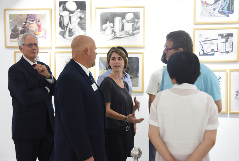 上海震旦教育集團張沈董事長致歡迎詞,上海震旦職業(yè)學院陳力華校長和美國錫耶納赫茲大學李·強森副校長各自介紹學?;厩闆r,雙方就合作培養(yǎng)我校藝術設計專業(yè)學生展開了討論,最后雙方對合作協(xié)議內容達成共識、并確認美國錫耶納赫茲大學承擔的具體課程。美國錫耶納赫茲大學李·強森副校長一行4人同時考察了我校畫室、3D打印實訓室等藝術實訓室,參觀了我校藝術專業(yè)學生的作品,還與我校藝術專業(yè)學生座談,對我校學生的綜合素質評價較高。